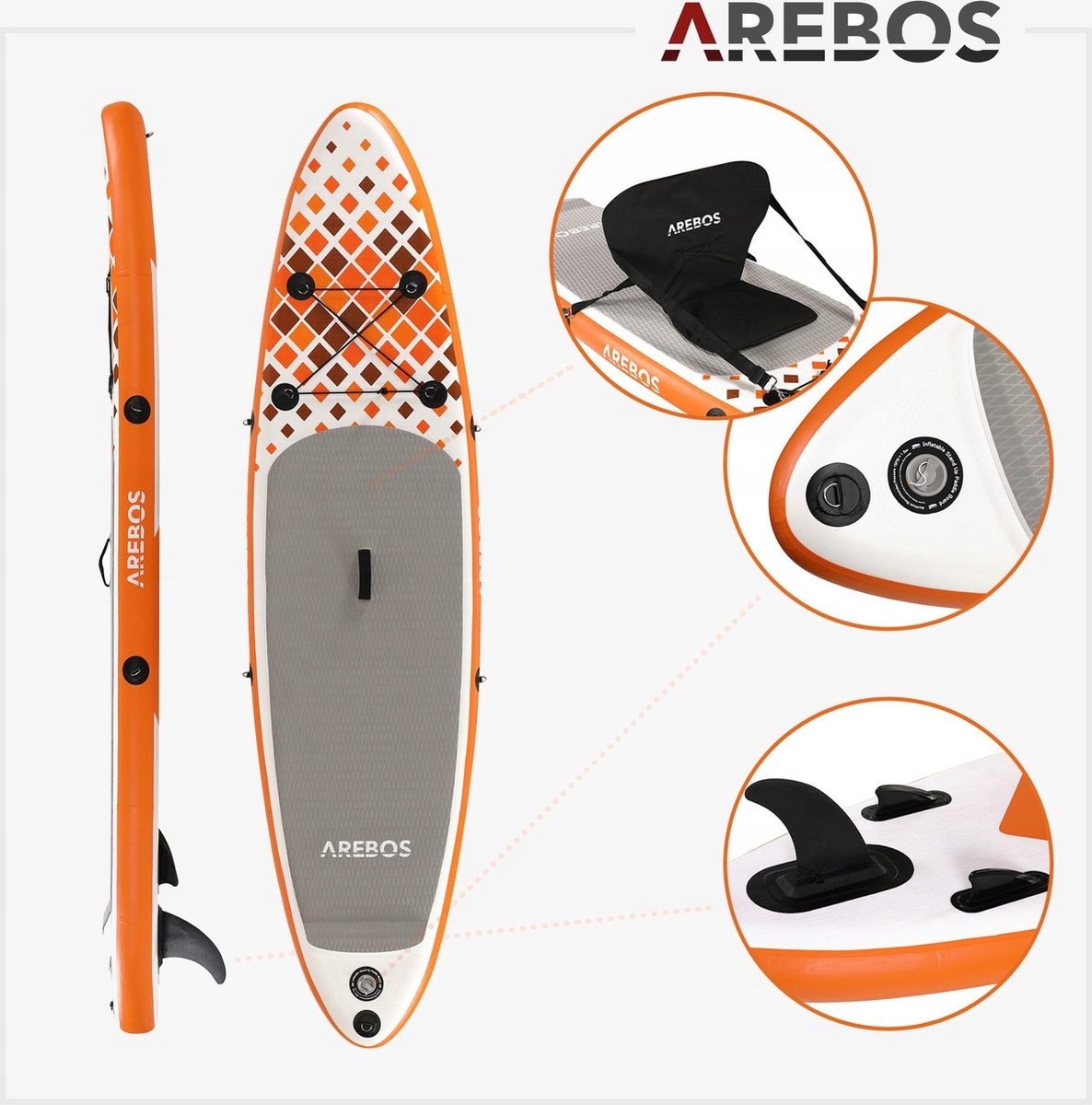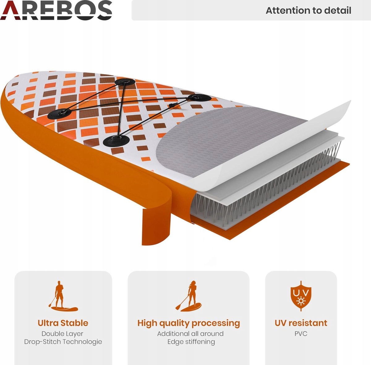 arebos sup board - надувная плата SUP - двойной слой - Регулируемое весло - Полный набор - включая насос - включая комплект по техническому обслуживанию - 300 см - оранжевый/ белый h1>