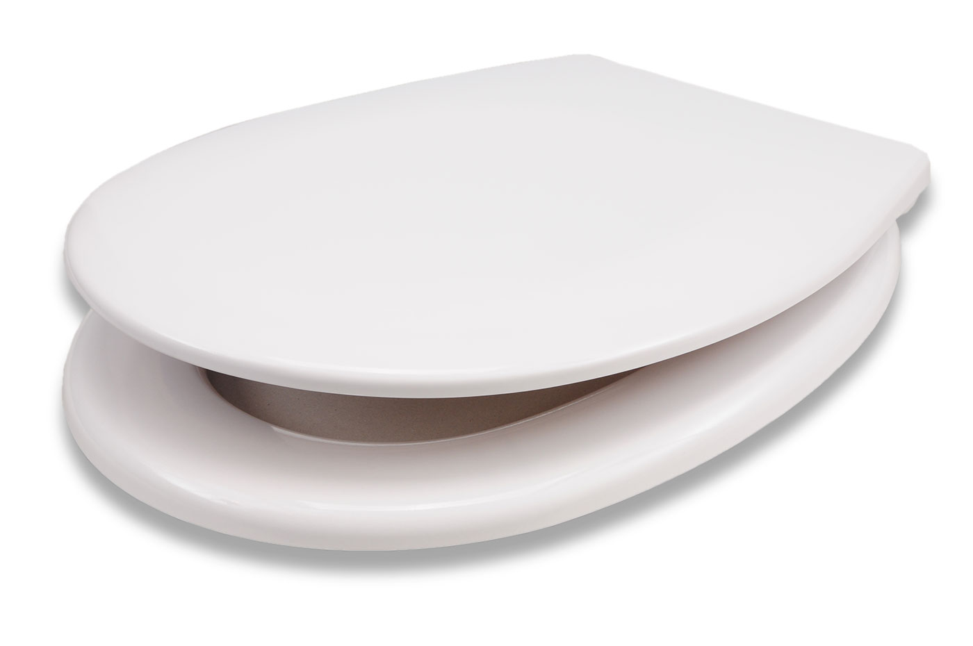 Сиденье для унитаза с самозакрывающимся механизмом - изготовлено из твердого, прочного дюропласта.