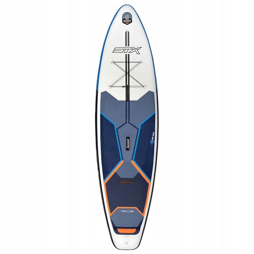 Доска WindSUP STX HYBRID CRUISER 10 футов 8 дюймов — это надувная универсальная доска, идеальная как для гребли стоя, так и для плавания. уроки виндсерфинга. Доска размером 10 футов 8 дюймов очень легкая (9,85 кг) и ее очень легко прикрепить к доске. парус для виндсерфинга (движитель для виндсерфинга). Доска изготовлена по новейшей технологии FXL, то есть сверхлегкая и очень жесткая конструкция Machine Weave - благодаря небольшому весу это доска для SUP, подходящая для виндсерфинга. занятия для людей весом более 85 кг. Доска имеет очень хорошую устойчивость благодаря ширине 86 см и толщине 15 см. Подходит для плавания на небольших волнах. Также идеально подходит для начинающих и в качестве универсальной семейной доски. доска WindSUP — отличная доска для занятий виндсерфингом.