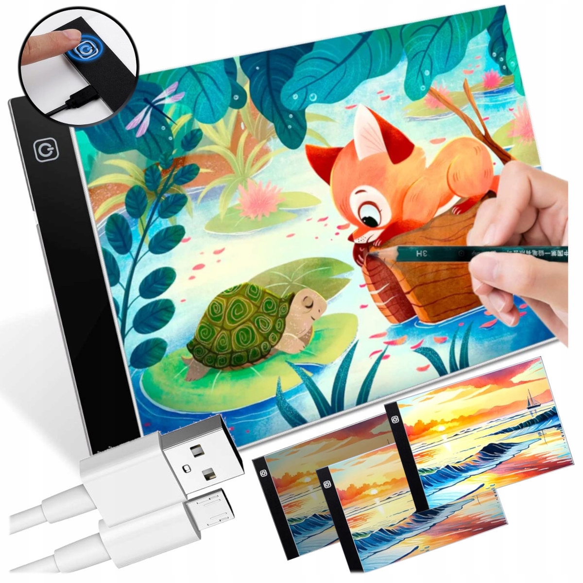 Продукт очень легкий, а его толщина составляет около 3,5 мм. Вы можете нарисовать, сидя или удерживая доску на коленях. Встроенные светодиоды обеспечивают безопасное освещение для глаз, что уменьшает их усталость при рисунке