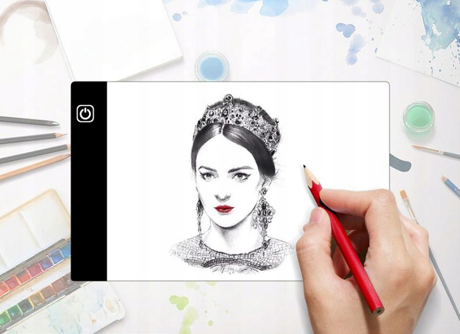 Доска для рисования с подсветкой (формат А4)предназначена для людей, которые хотят научиться рисовать. Благодаря доске с подсветкой можно делать зарисовки и рисунки на кальке и бумаге.
