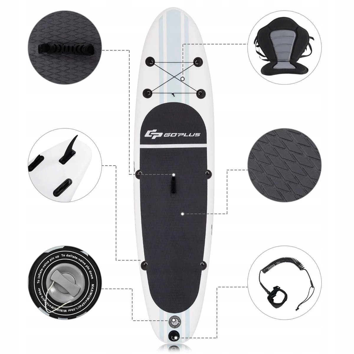 Комплект аксессуаров для SUP: В комплект SUP-доски входят полные аксессуары, позволяющие заниматься серфингом. различные занятия в воде и предотвращение несчастных случаев, например, рюкзак, ручной компрессор, регулируемое весло, сиденье, сумка для ремонта, веревка и съемный ласт. Это идеальное место для множества приключений, занятий йогой, серфингом и рыбалкой с семьей и друзьями.