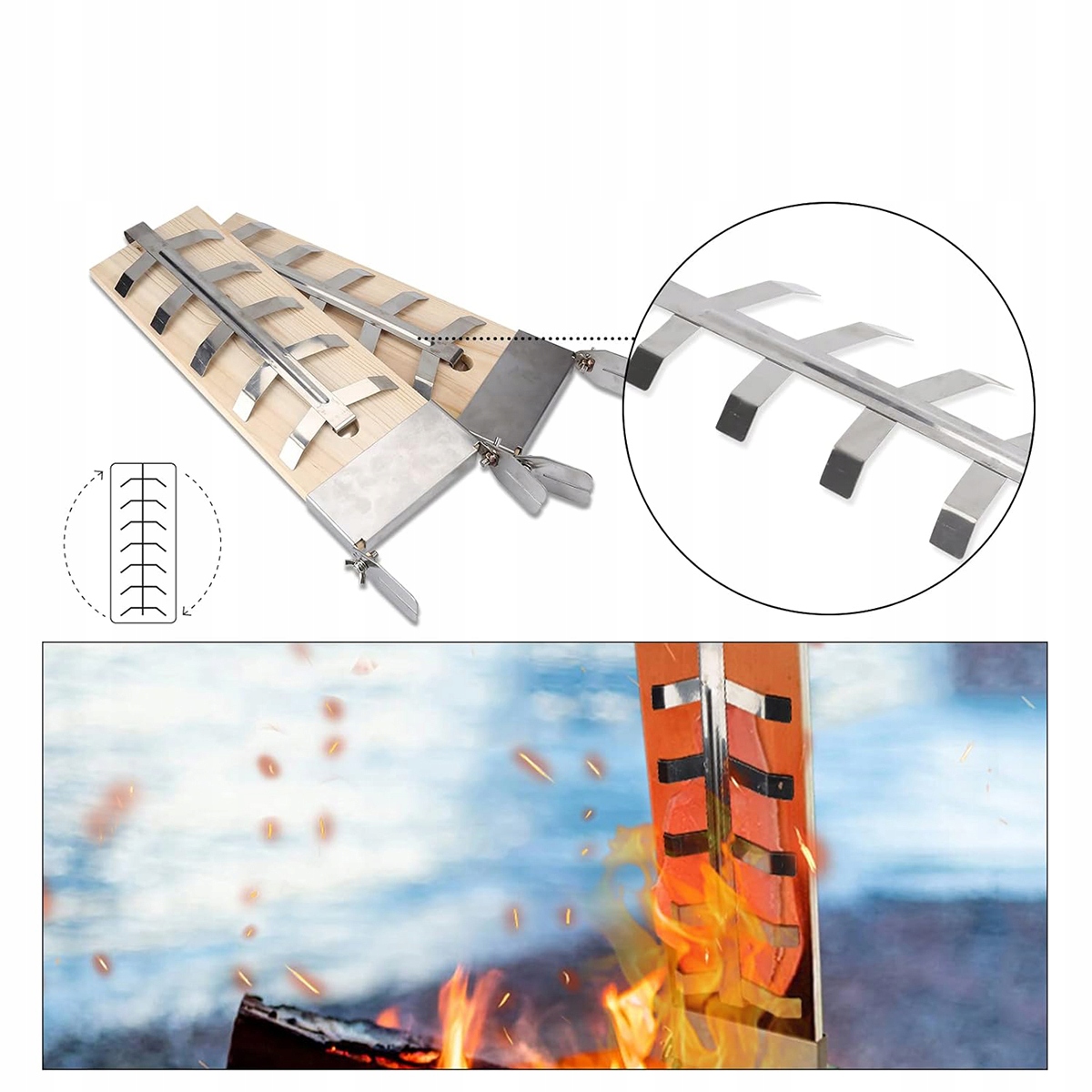 - Легко крепится к грилю или чаше камина.