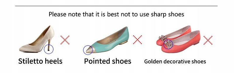 Не носите их с высокими каблуками, заостренной обувью или обувью с выступающими острыми украшениями.