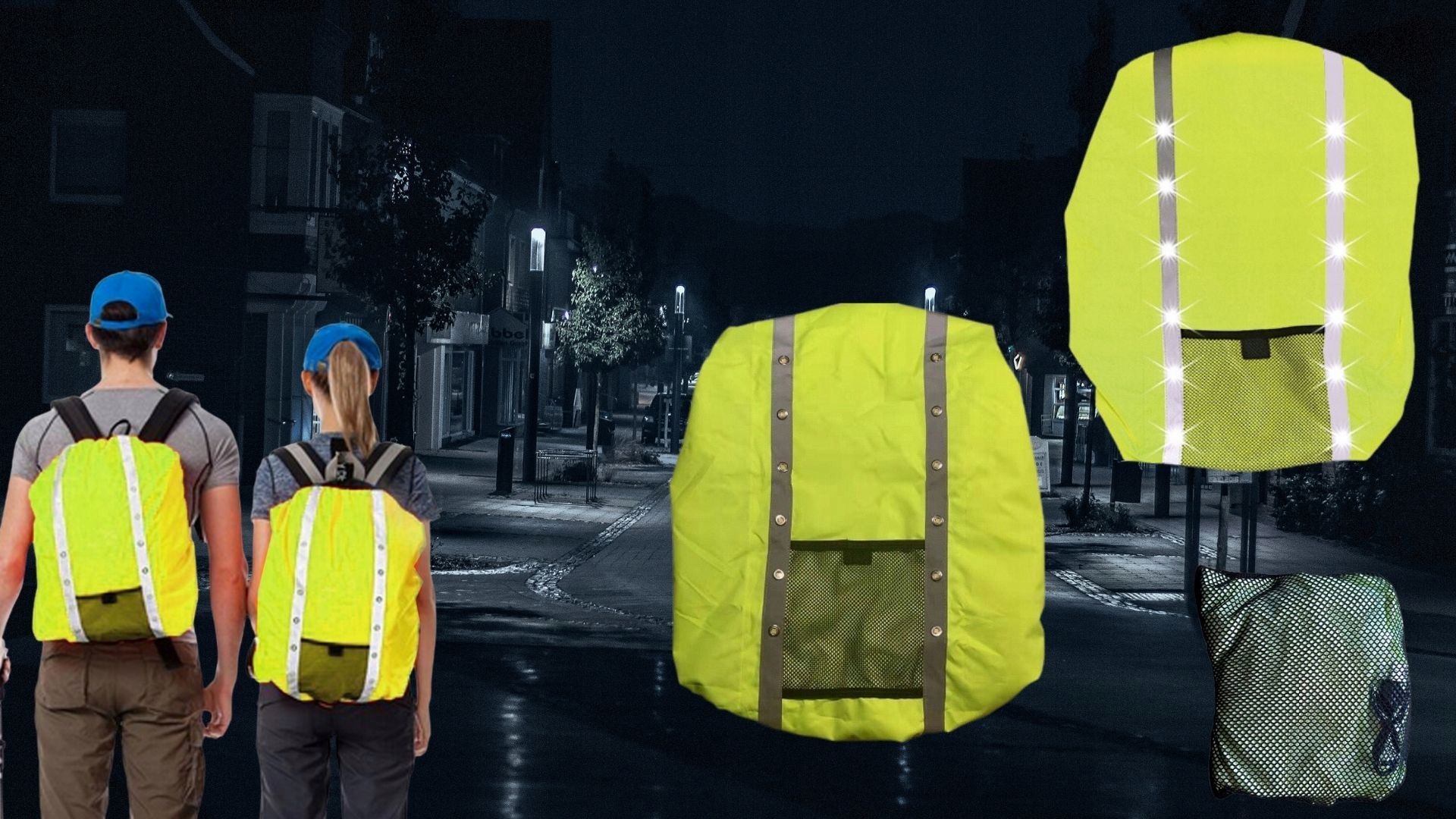 ➡️ Водонепроницаемый, заметный, светоотражающий чехол на рюкзак со светодиодами (3 режима освещения)