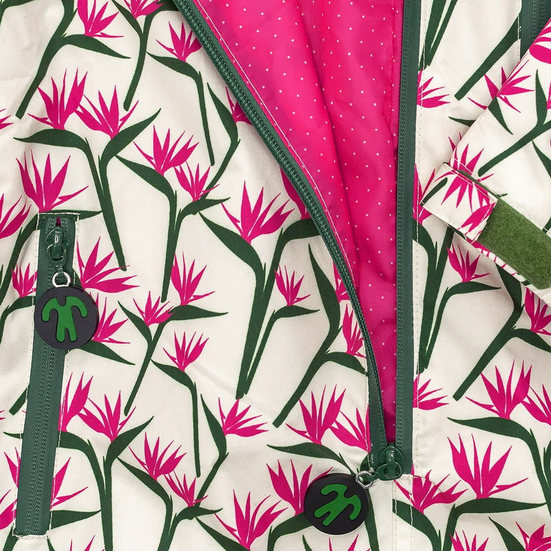 Модный, забавный, оригинальный и практичный цельный всесезонный костюм для девочки Ducksday 'Дождь и снег' с мембраной, без утеплителя, непромокаемый, ветронепроницаемый, дышащий, а также защищает от снега зимой. Складывается в небольшой размер. Сумка расположена внутри штанины костюма, поэтому ее всегда можно носить с собой.