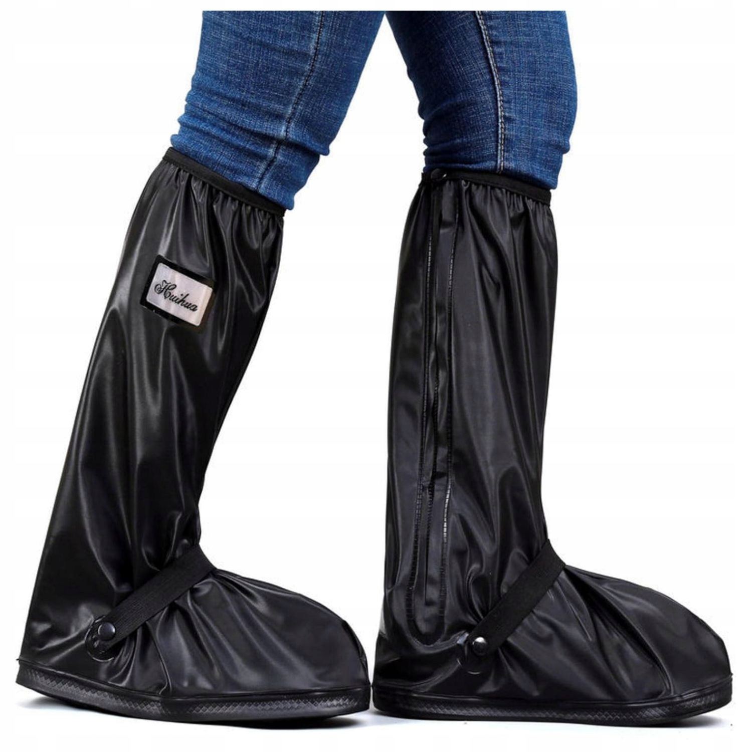 Эластичный верхний материал и кнопки обеспечивают удобную посадку и не скользят. Сбоку защитных чехлов имеется водонепроницаемая молния, благодаря которой их легко надевать и снимать. Водонепроницаемая ткань, расположенная за молнией, обеспечивает двойной водонепроницаемый эффект. Усиленная нескользящая подошва из ПВХ гарантирует надежное сцепление с землей. Эластичный ремешок на щиколотке обеспечивает более эргономичную посадку. Светоотражающие метки на икре и пятке обеспечивают большую безопасность в ночное время.