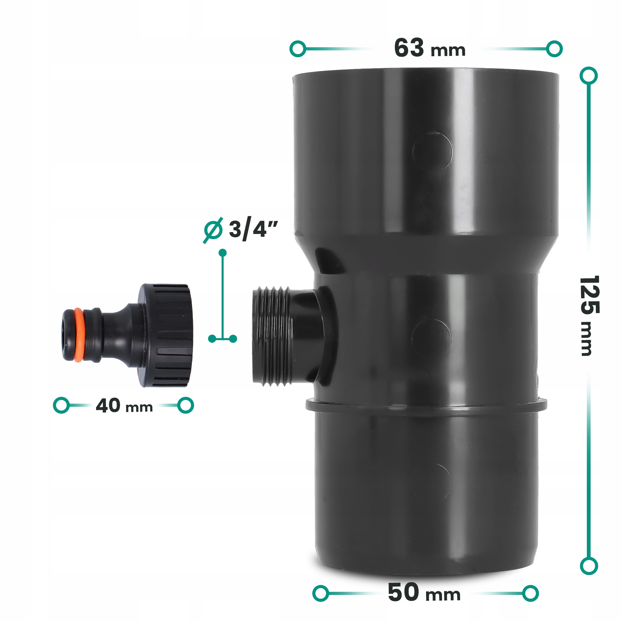 Сборник дождевой воды 63 мм x 3/4" GZ графит с соединением для быстрого соединения 3/4" GW x SZ