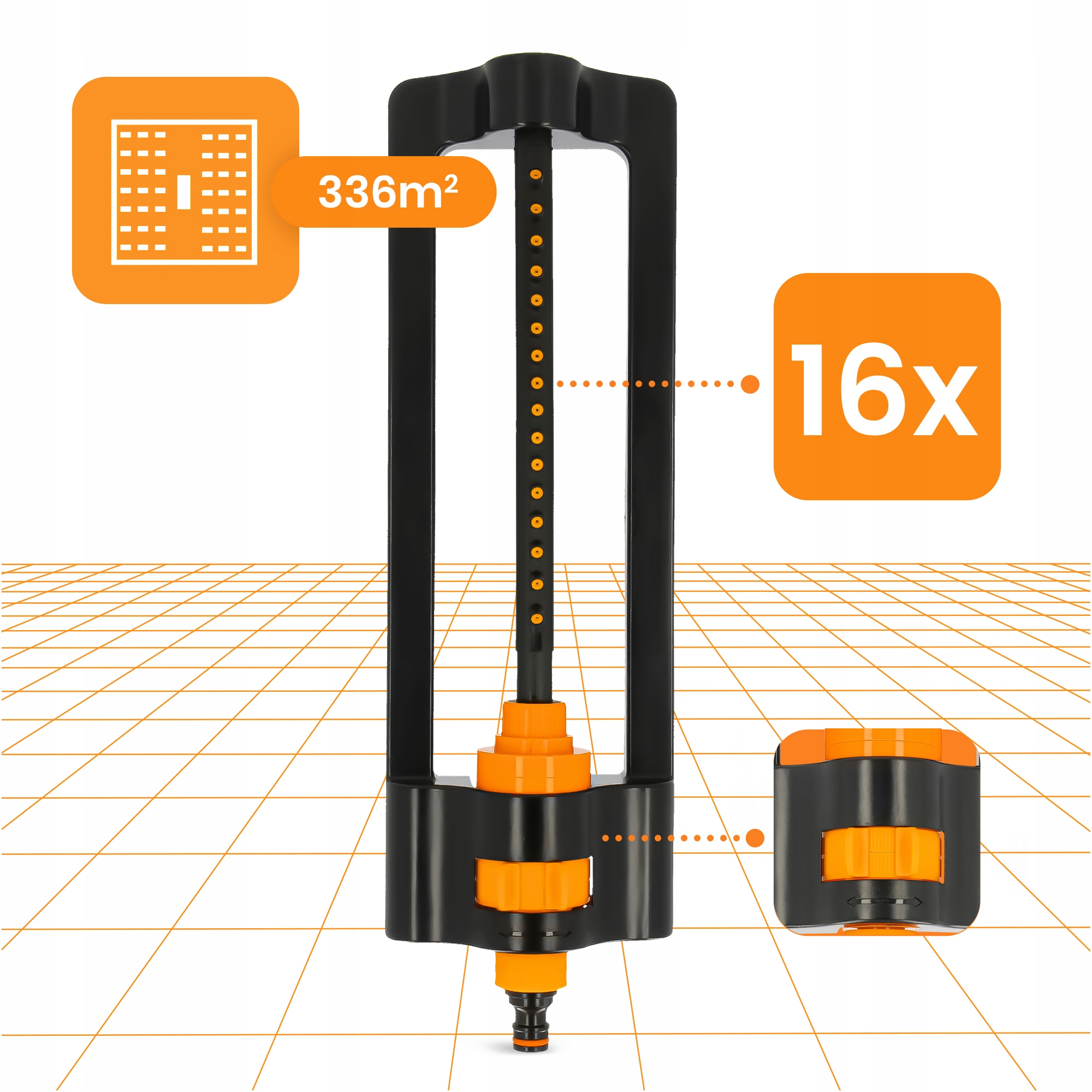 ✅ ИДЕАЛЬНО ДЛЯ БОЛЬШИХ САДОВ - с помощью осциллирующего разбрызгивателя можно поливать площадь до 336 м2.