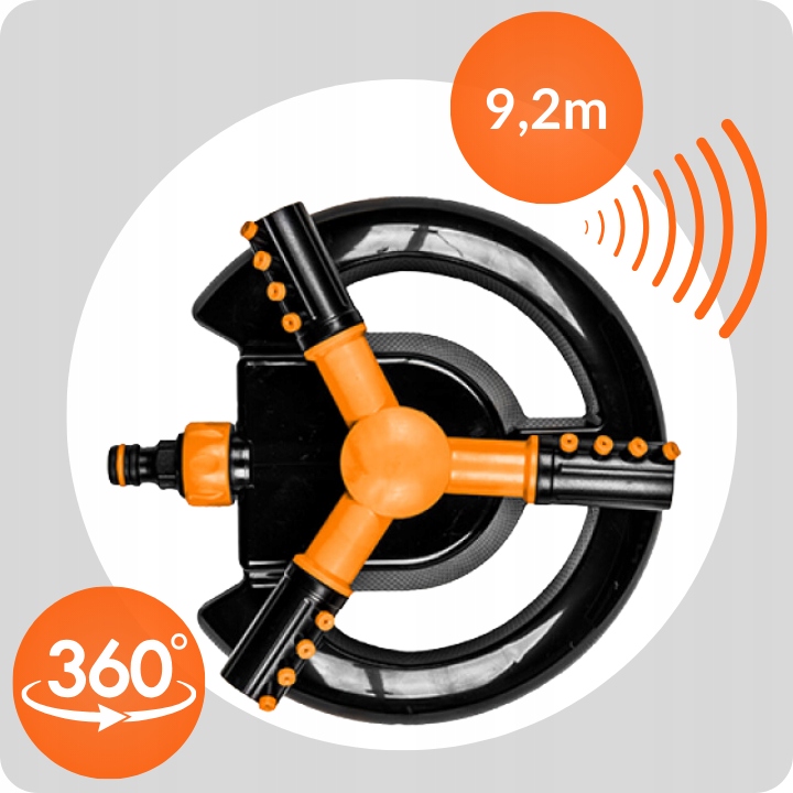 ➡️ Функциональность: Разбрызгиватель имеет механизм вращения на 360 градусов и регулируемый тип струи, что обеспечивает гибкость в поливе и позволяет настраивать разбрызгиватель под различные условия. Дальность действия 9,2м