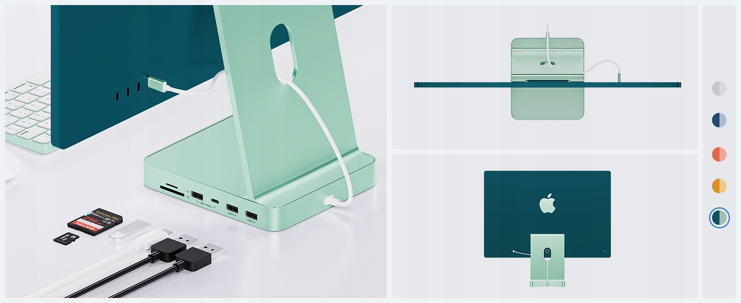 Док -станция Pulwtop для IMAC 24 "M1/M3 10GB USB C SD/TF Green Reader