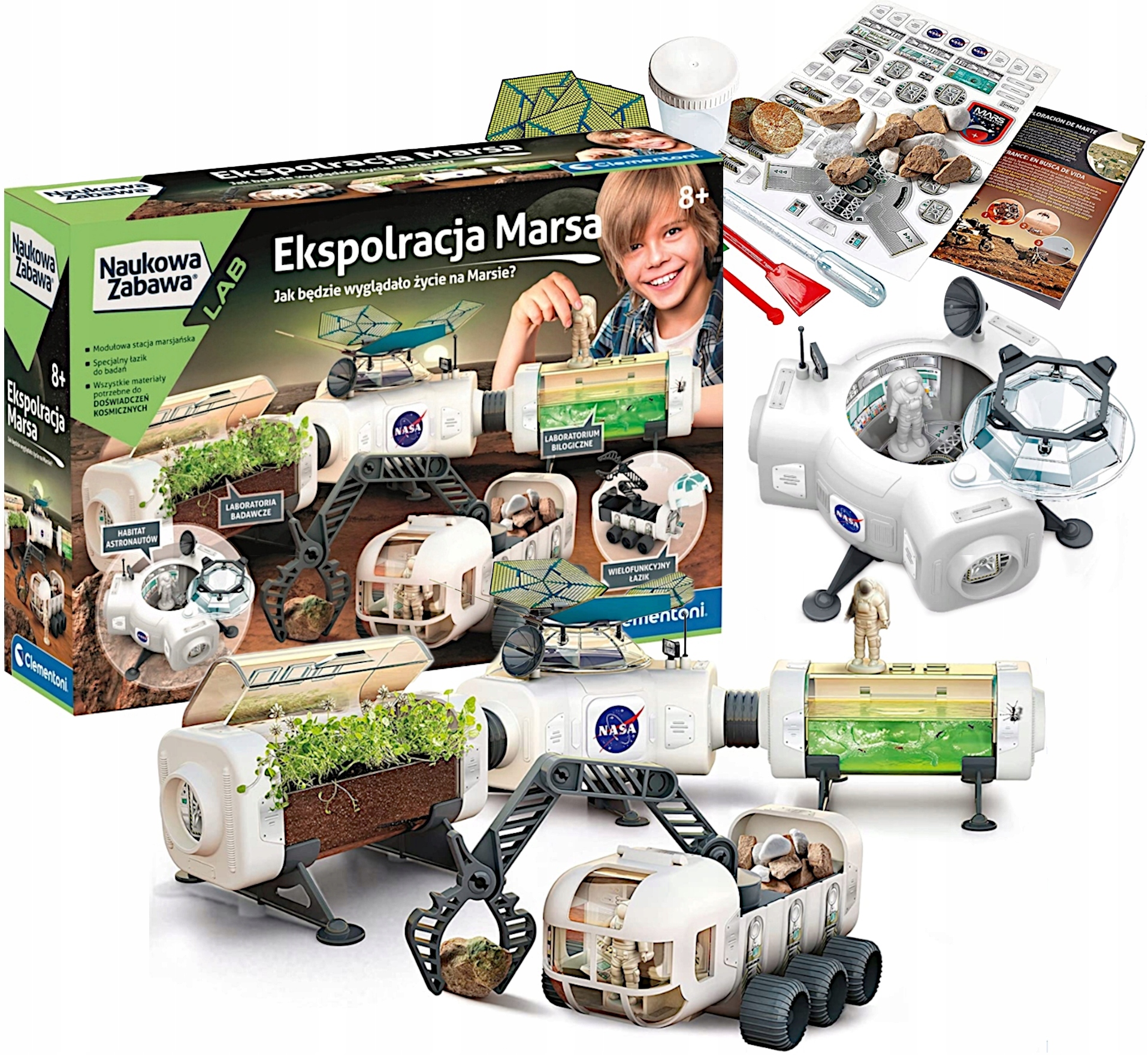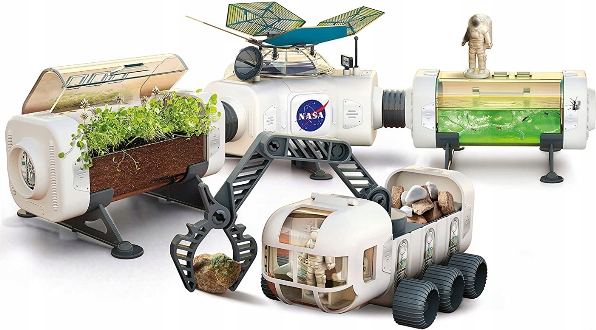 Футуристическая космическая база НАСА с марсоходом, который нужно собрать, и множеством захватывающих экспериментов, чтобы отправиться в захватывающее путешествие в поисках тайн Красной планеты.