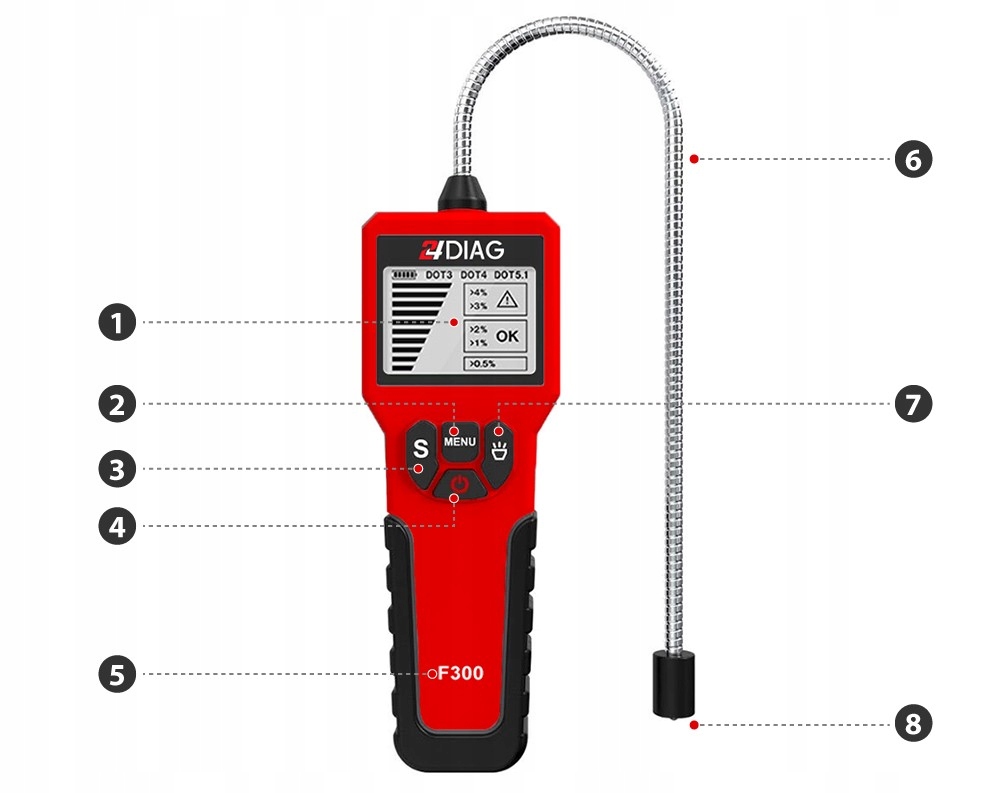 ПРОФЕССИОНАЛЬНЫЙ ЦИФРОВОЙ ТЕСТЕР ТОРМОЗНОЙ ЖИДКОСТИ С ЭЛЕКТРОННЫМ ДИСПЛЕЕМ И ГИБКИМ ЗОНДОМ.