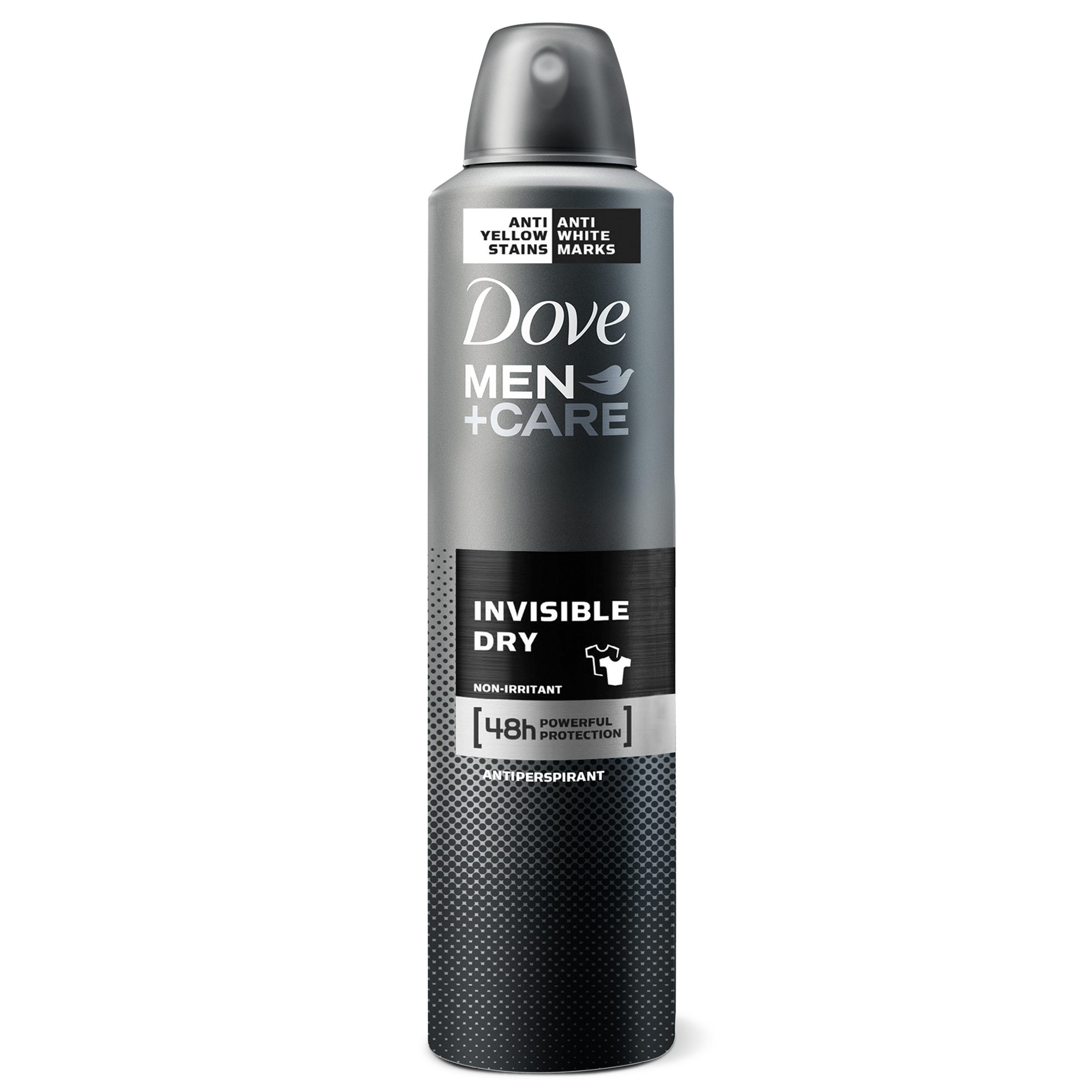 Чувствуйте себя комфортно и уверенно без белых пятен благодаря спрею-антиперспиранту Dove Men + Care Invisible Dry.