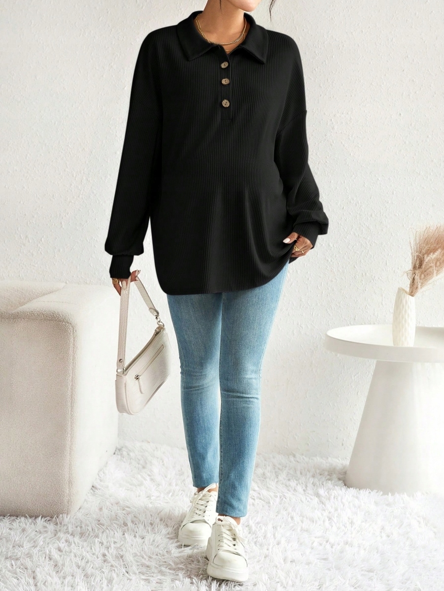 ДОВГА БЛУЗКА ДЛЯ ВАГІСТНИХ SHEIN MATERNITY, ВІЛЬНА, ЧОРНА L 947