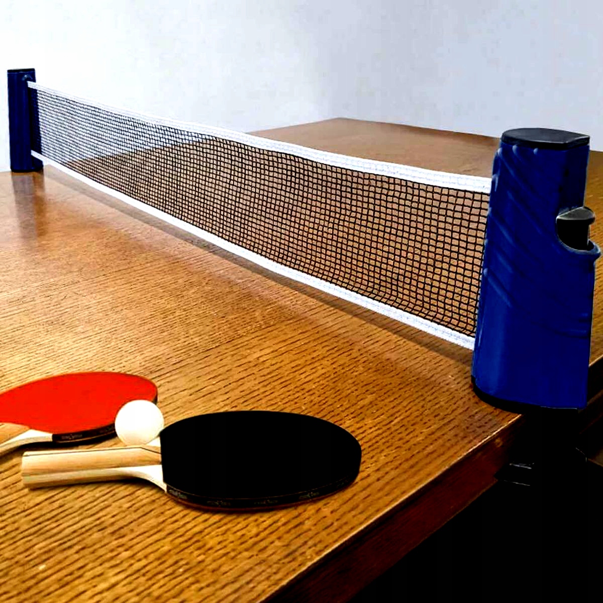✨Автоматически выдвигаемая сетка длиной до 165 см позволяет играть в настольный теннис на любой твердой поверхности в помещении или на улице! Всего несколько быстрых движений и столешница толщиной до 5 см и можно начинать играть.✨