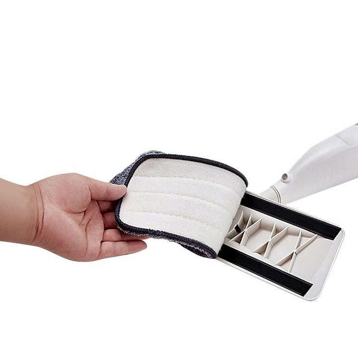 В комплект входит сменный чехол из микрофибры, крепящийся на липучке. Это чрезвычайно удобно, поскольку грязные накладки мы можем легко стирать в стиральной машине и использовать их много раз, а благодаря использованию микрофибры нам не придется использовать химикаты.
