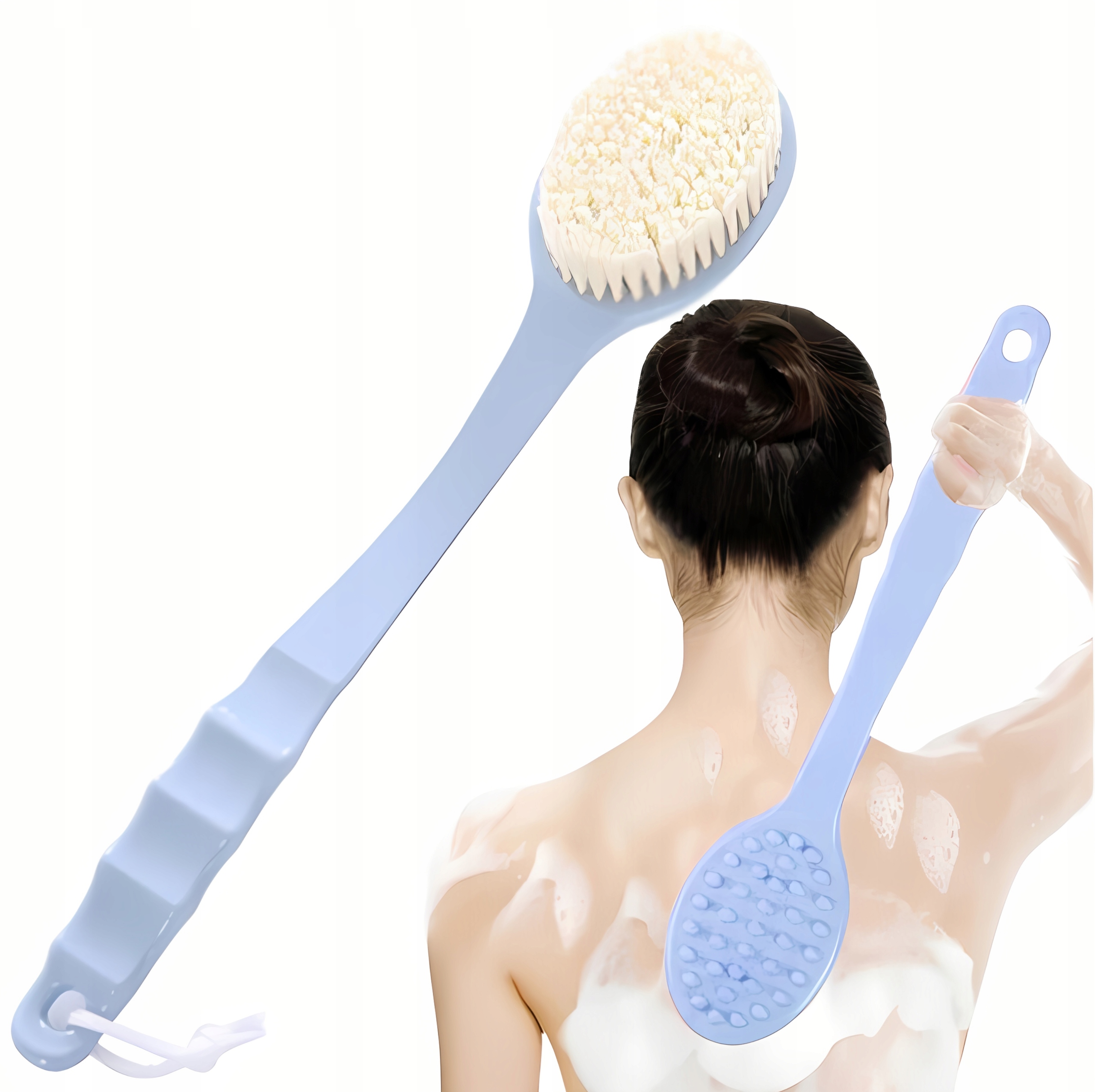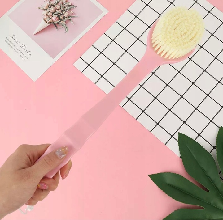 Позаботьтесь о своем ежедневном уходе и комфорте во время купания! длинная задняя щетка - незаменимый гаджет в каждой ванной комнате. благодаря этому вы можете легко мыть твердые места на спине и всего тела. Гибкий, нежные щетинки тщательно очищает кожу, стимулирует циркуляцию и очистку, не раздражая кожу. другая сторона с вкладками позволяет приятный расслабляющий массаж, который может помочь уменьшить мышечный тонус.