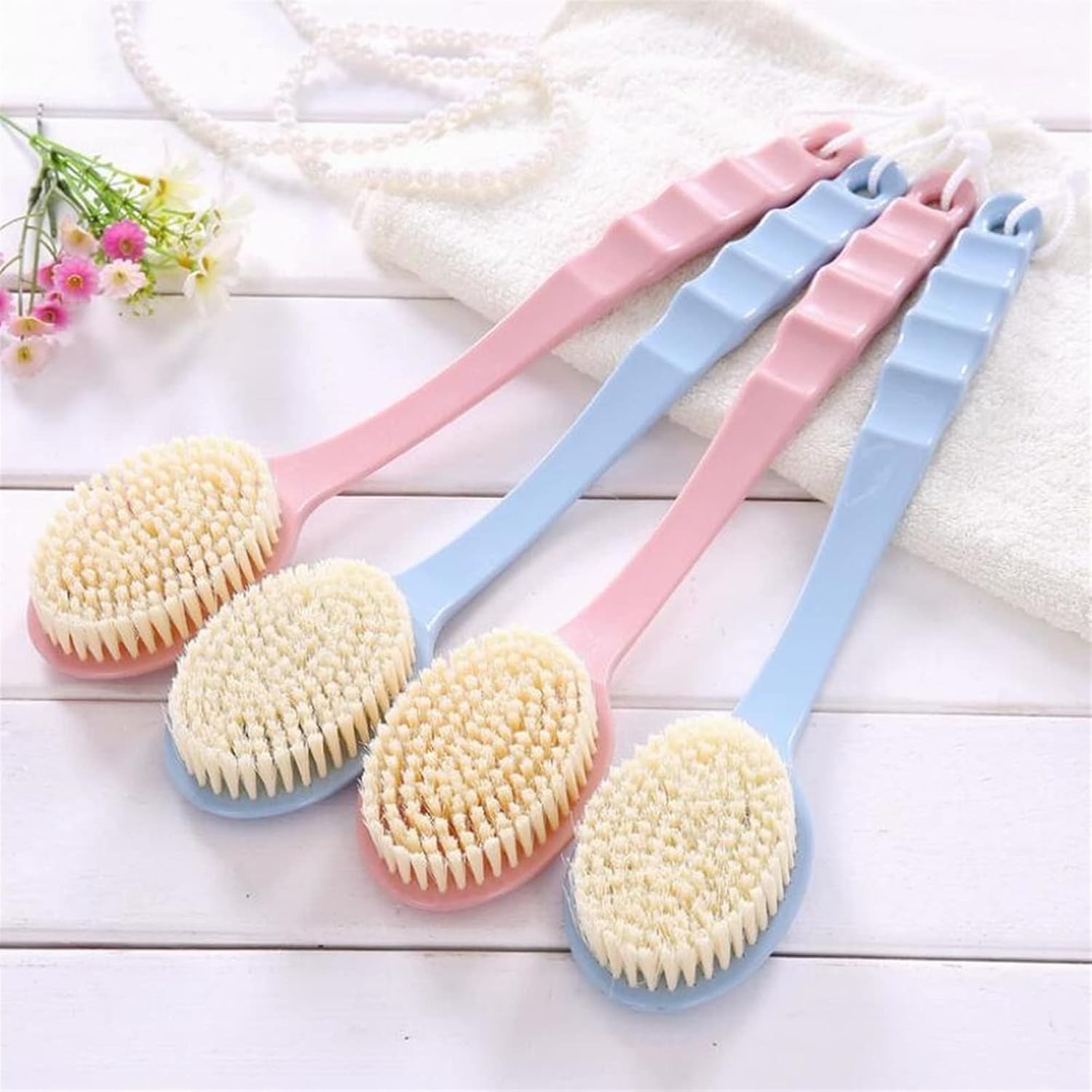 длинная щетка для стирки массажа тела на задней панели для ванны с ручкой