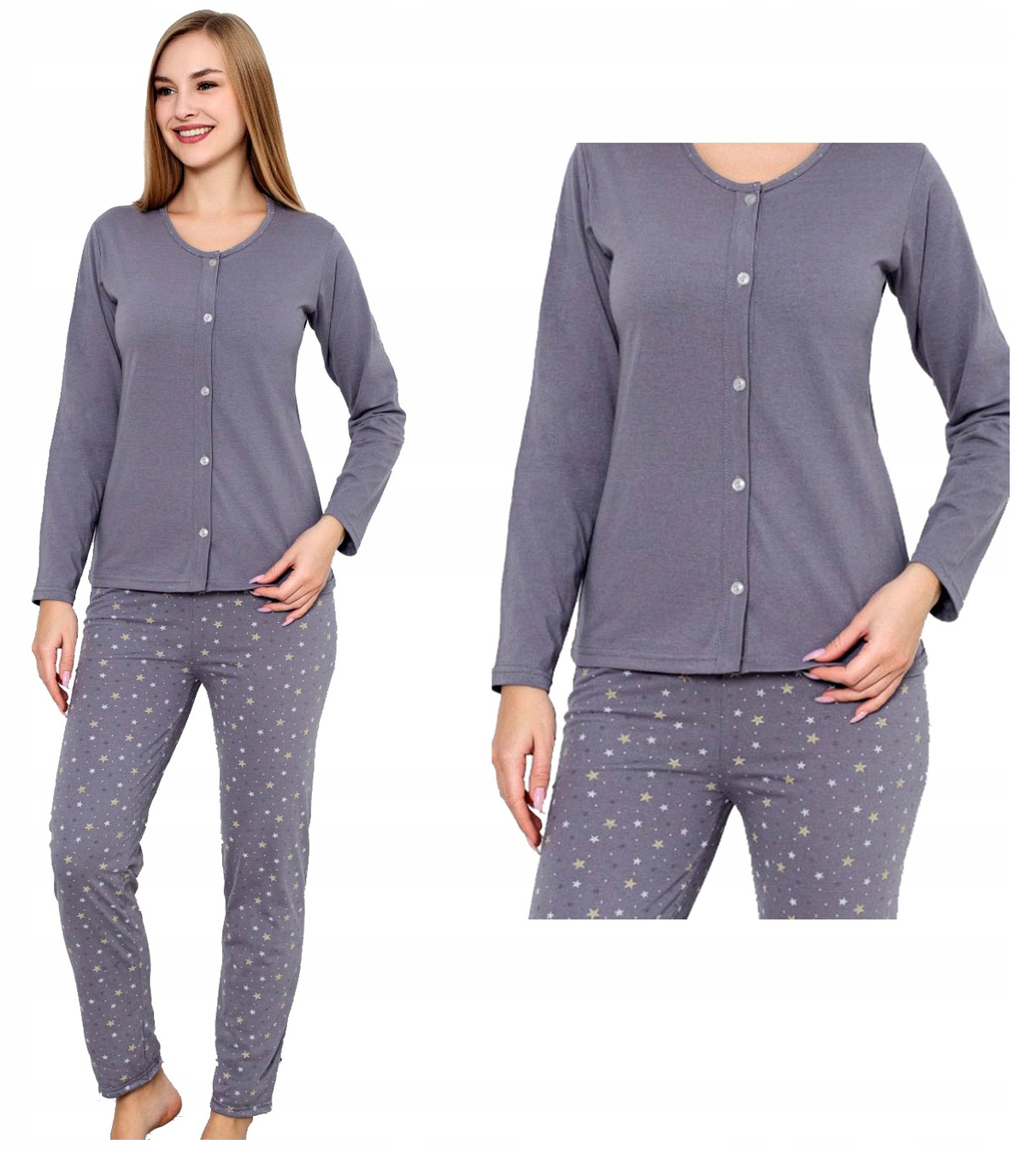 длинная хлопчатобумажная пижама расстегнута в больницу с пуговицами l