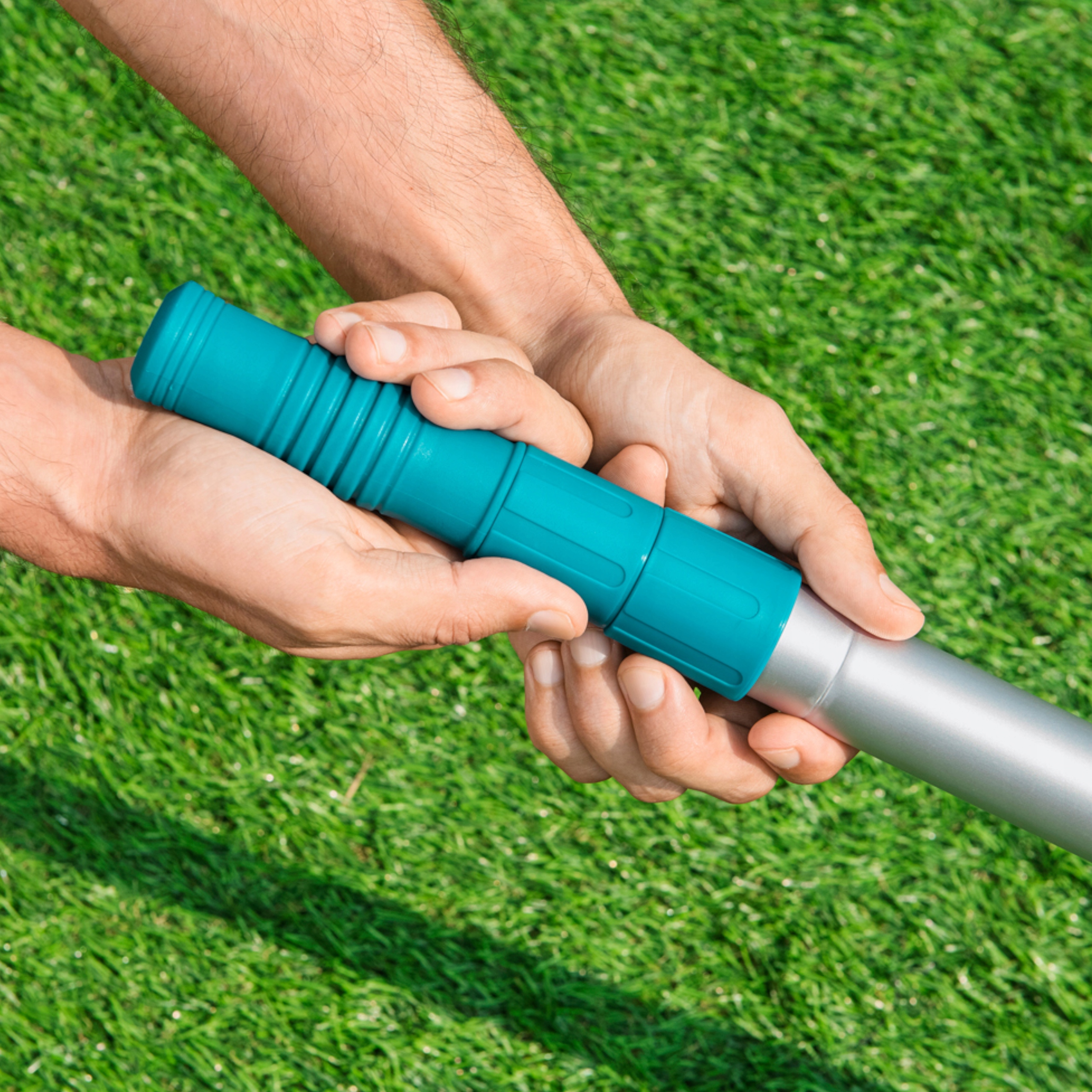 Палку можно прикрепить к любому подсаку или другим аксессуарам, позволяющим собирать грязь со всей поверхности бассейна. Благодаря регулировке длины палки до 360 см нам не нужно заходить в воду для вылова примесей.