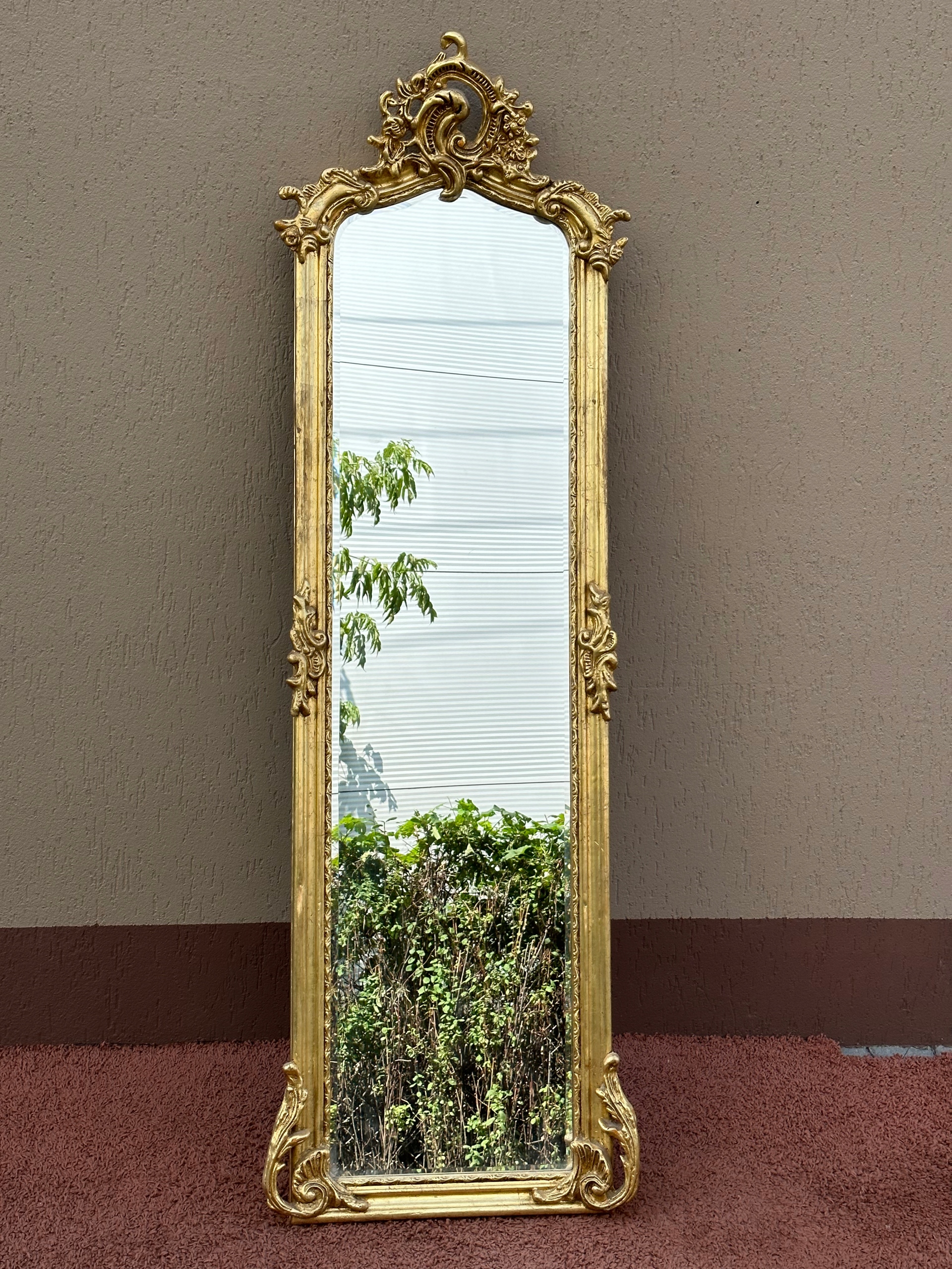 ДЛИННОЕ ЗЕРКАЛО С КОРОНОЙ СЕЦЕССИИ ЗОЛОТАЯ РАМКА КРАСИВАЯ