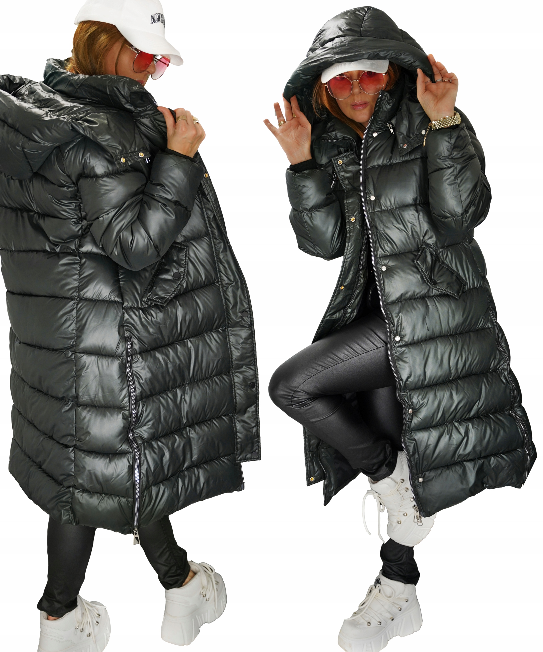 ДЛИННОЕ СТЕГАНОЕ ЗИМНЕЕ ПАЛЬТО С КАПЮШОНОМ И МОЛНИЯМИ ПО БОКАМ, ЧЕРНОЕ;
