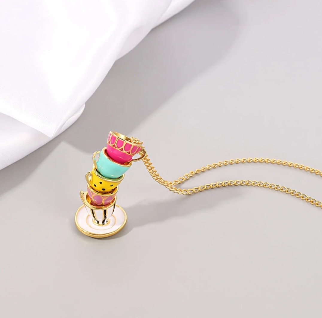 Очаровательные, привлекающие внимание чашки в виде кулона на длинной цепочке в стиль Алисы в стране чудес, выполненный с вниманием к каждой детали!