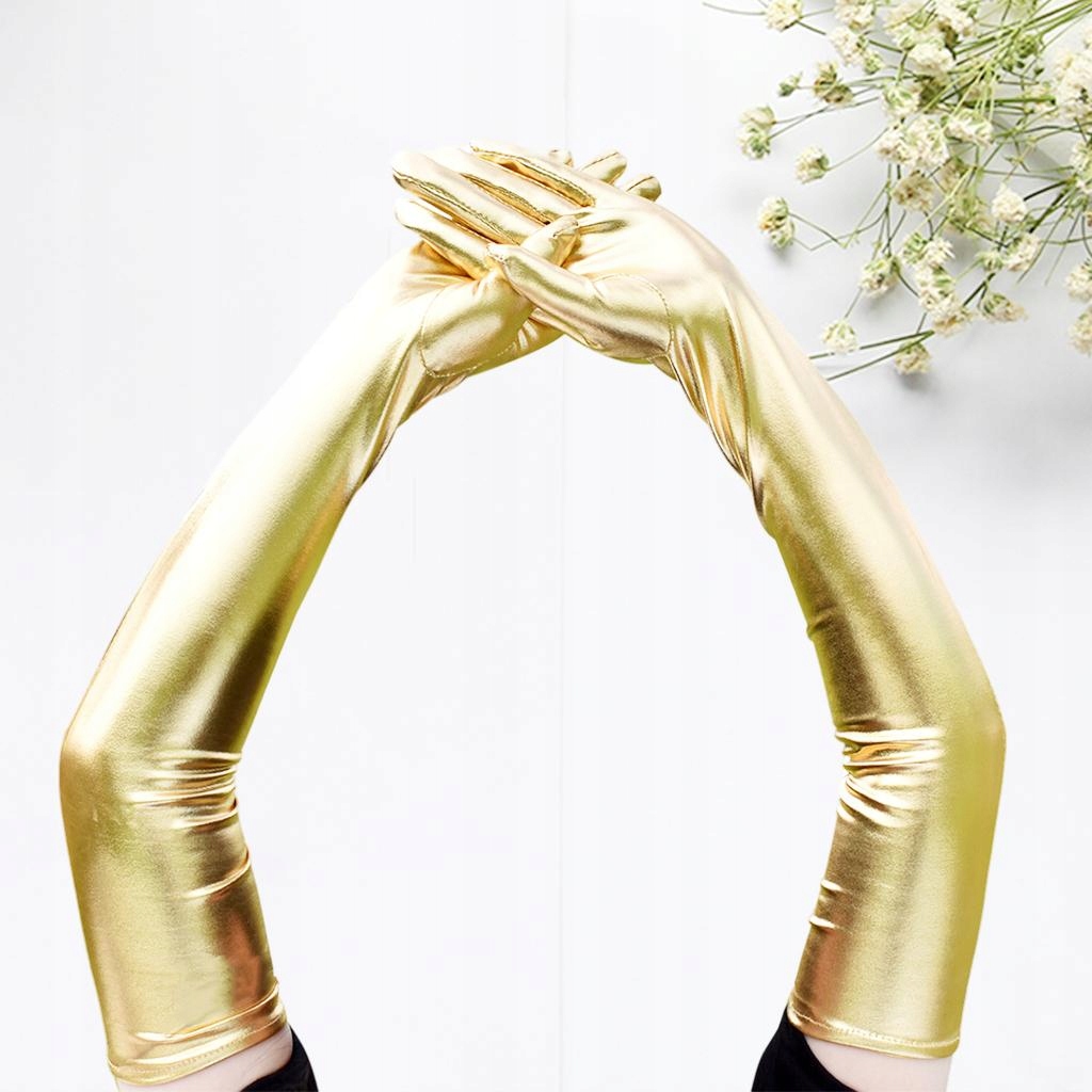 Женские перчатки с эффектом металлик, длина 53 см, танцевальная опера, косплей, нарядное платье, золото