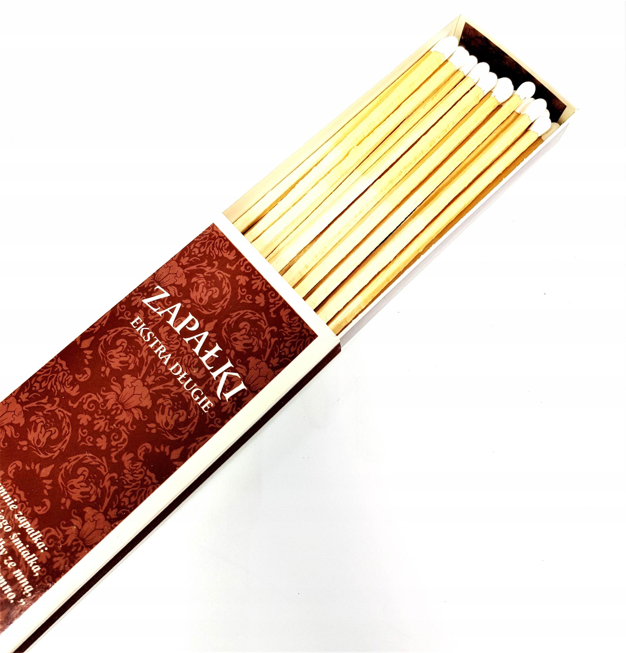 Длинные спички – 175 мм – благодаря использованию относительно толстой древесины ( 3x3 мм) они жесткие и безопасные в использовании. Увеличенная толщина деревянной части приводит к более длительному периоду горения.