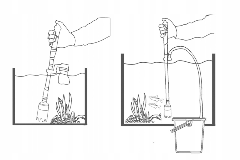 - насадка для удаления грязи и грязи со дна аквариума сачком во избежание затягивания рыб