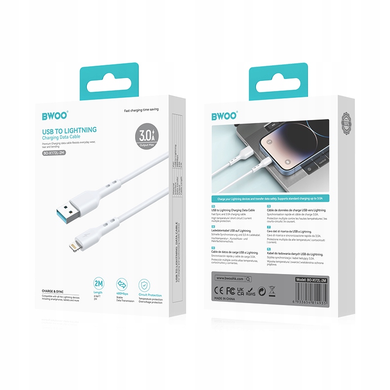 ⭐ Высококачественный гибкий USB-кабель Bwoo со штекером LIGHTNING (8-контактный) для продуктов Apple.