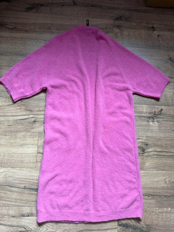 Я продаю оригинальный кардиган от 10Days Amsterdam, известного своим минималистичным премиальным стилем. • Фасон: свободный, oversize, без застежек - идеален для повседневного ношения и элегантного стиля • Длина: миди, доходит до середины бедра • Цвет: фуксия • Материал: качественная смесь шерсти и альпаки - мягкий, теплый и очень приятный в носке • Состояние: очень хорошее, без изъянов Универсальная модель - подойдет как под джинсы и футболку, так и под платье или элегантные брюки. Стиль casual-шик, характерный для 10Days Amsterdam – простой, удобный и в то же время эффективный. Ширина под мышками 60 см. Длина 120 см.