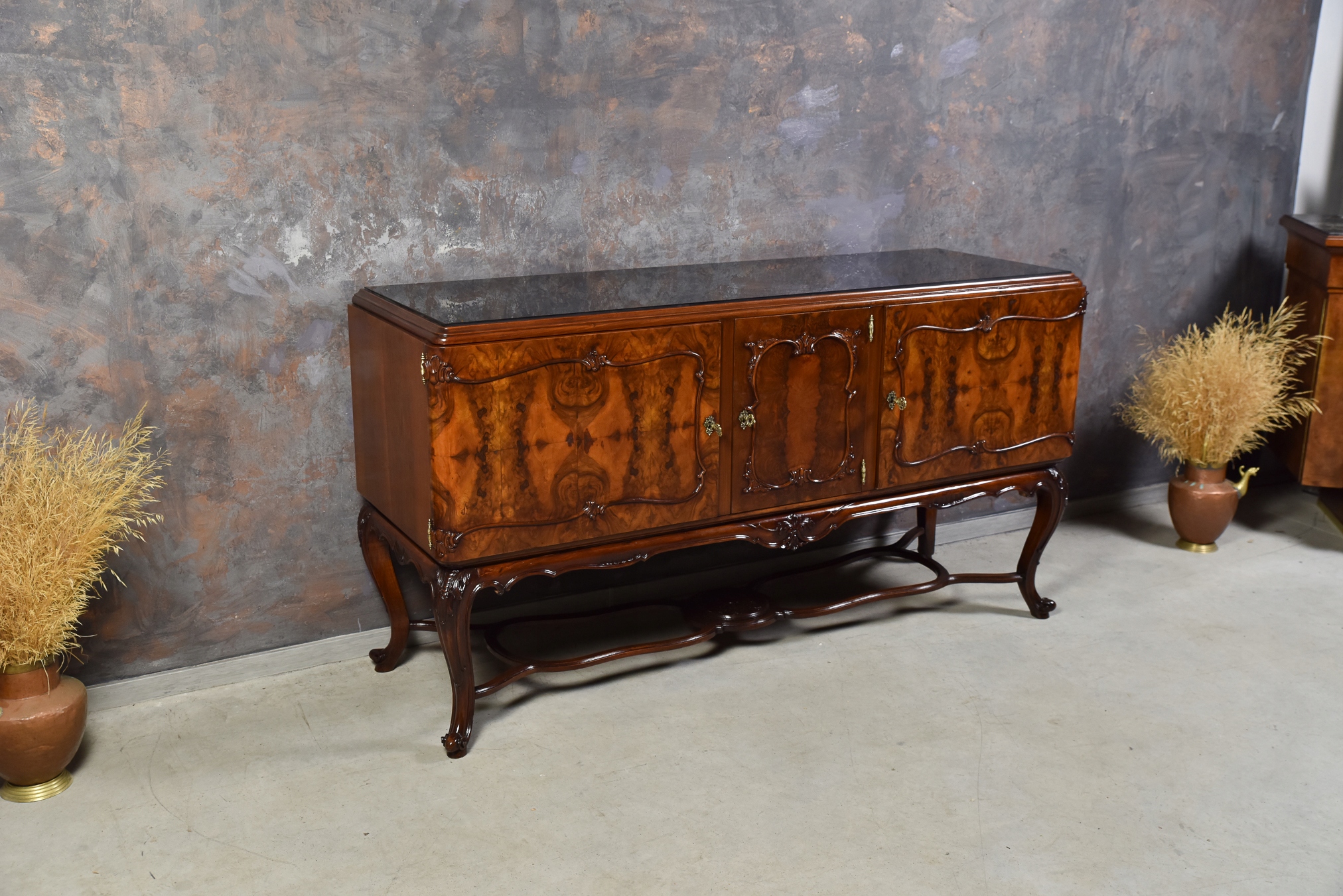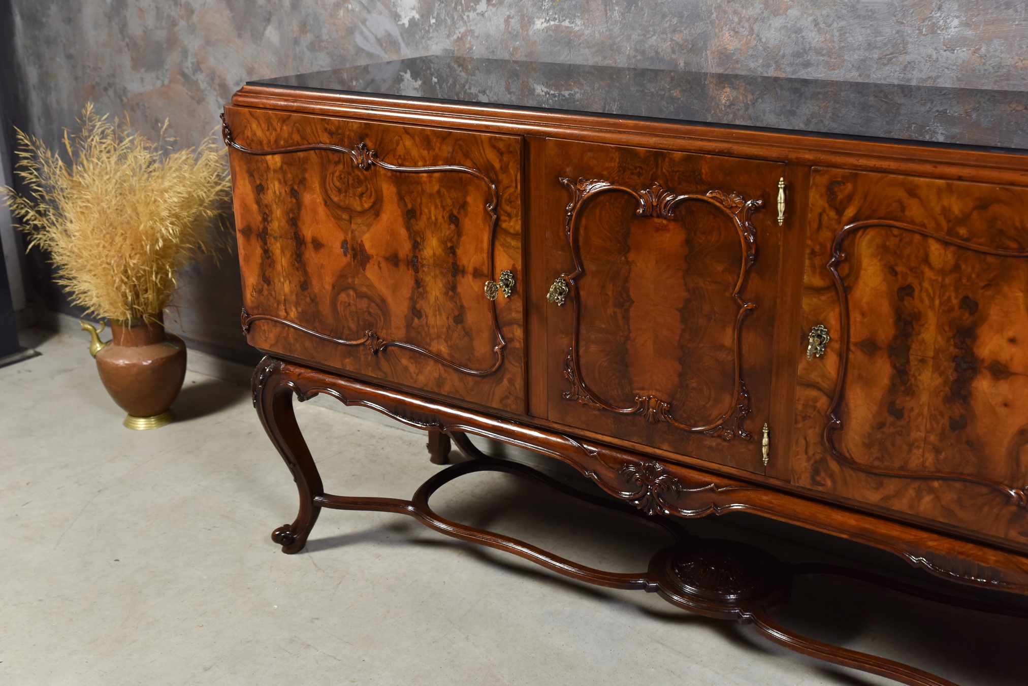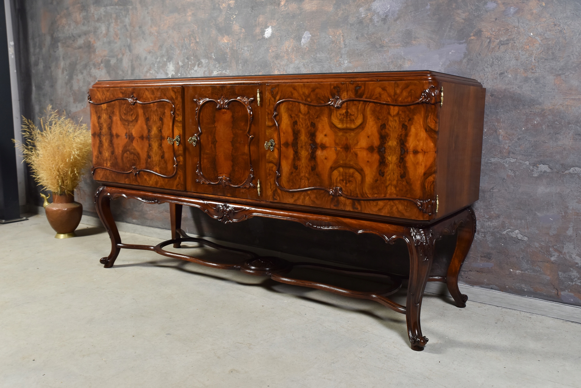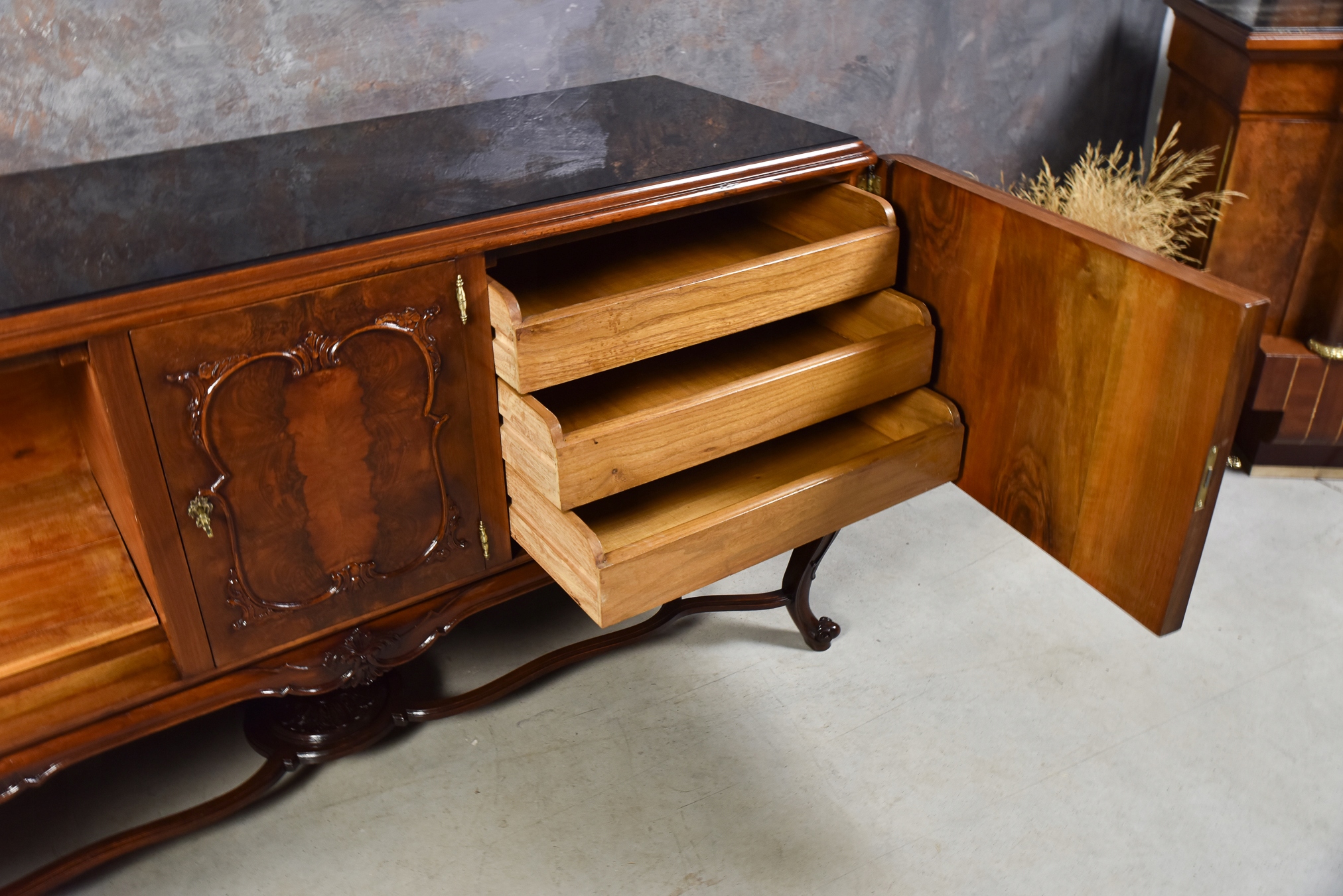 Длинная богато резное комод буйный салон сплошной деревянный орех после ремонта