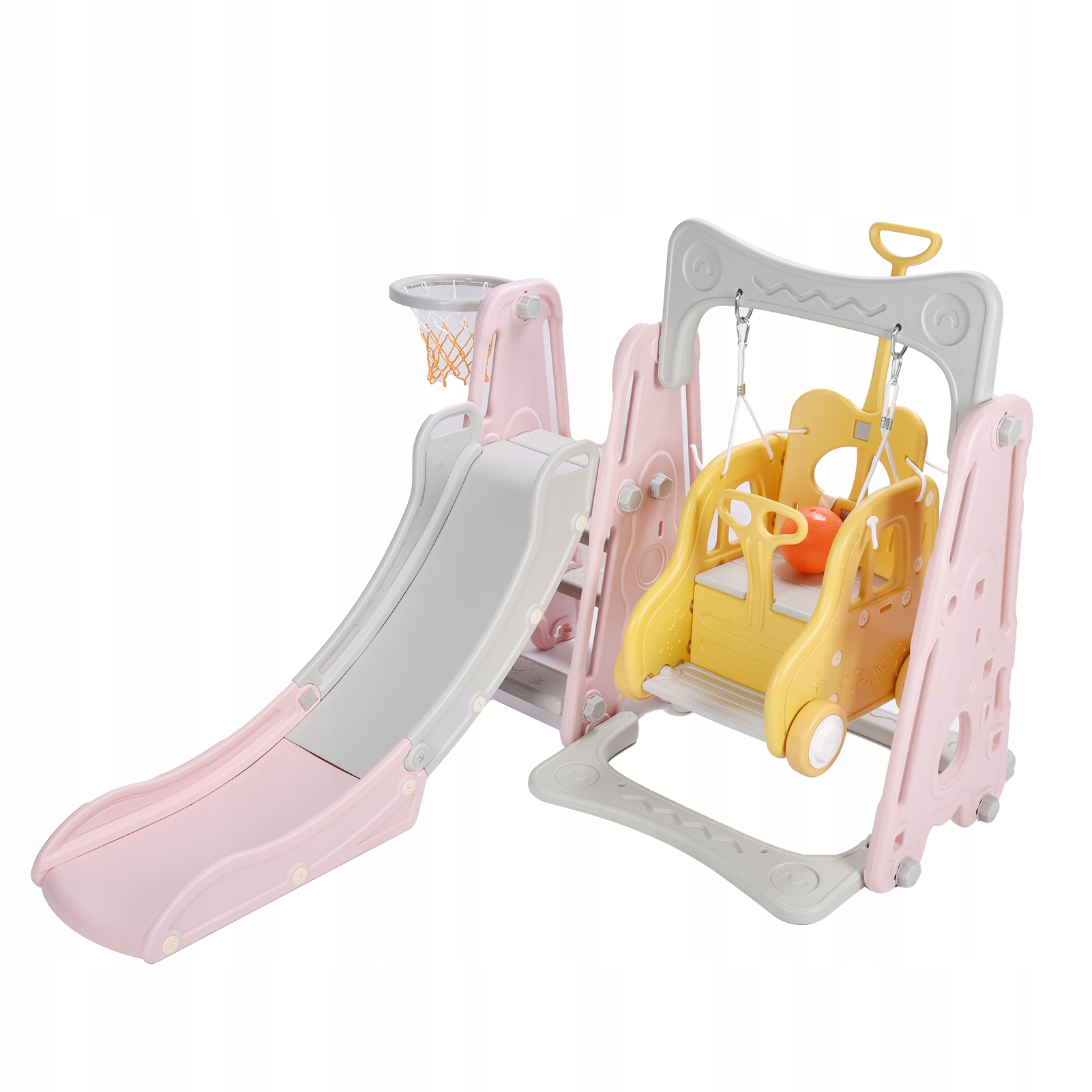 1 、 Качание можно использовать в качестве коляски, имеет 4 функции: слайд, качание на безопасности, баскетбольная подставка и ланящая лестница, подходящая для использования внутри и снаружи.