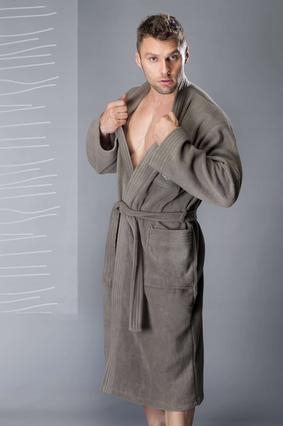 Элегантный мужской халат из мягкого флиса - мультисофт с отделкой складкой. Модель халата классического кроя кимоно до середины икры предназначена для мужчин, ценящих тепло и комфорт. Имеет функциональные карманы на бедрах и нагрудный карман с привлекательной вышивкой, завязываемый на талии ремнем. Карманы, манжеты и пояс прострочены в виде складки. Прекрасное предложение для осенних и зимних вечеров.