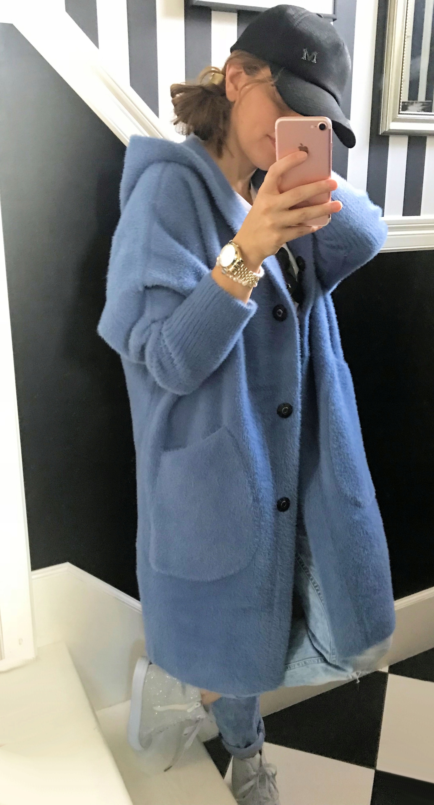 Длина свитера достигает чуть выше колен. p>