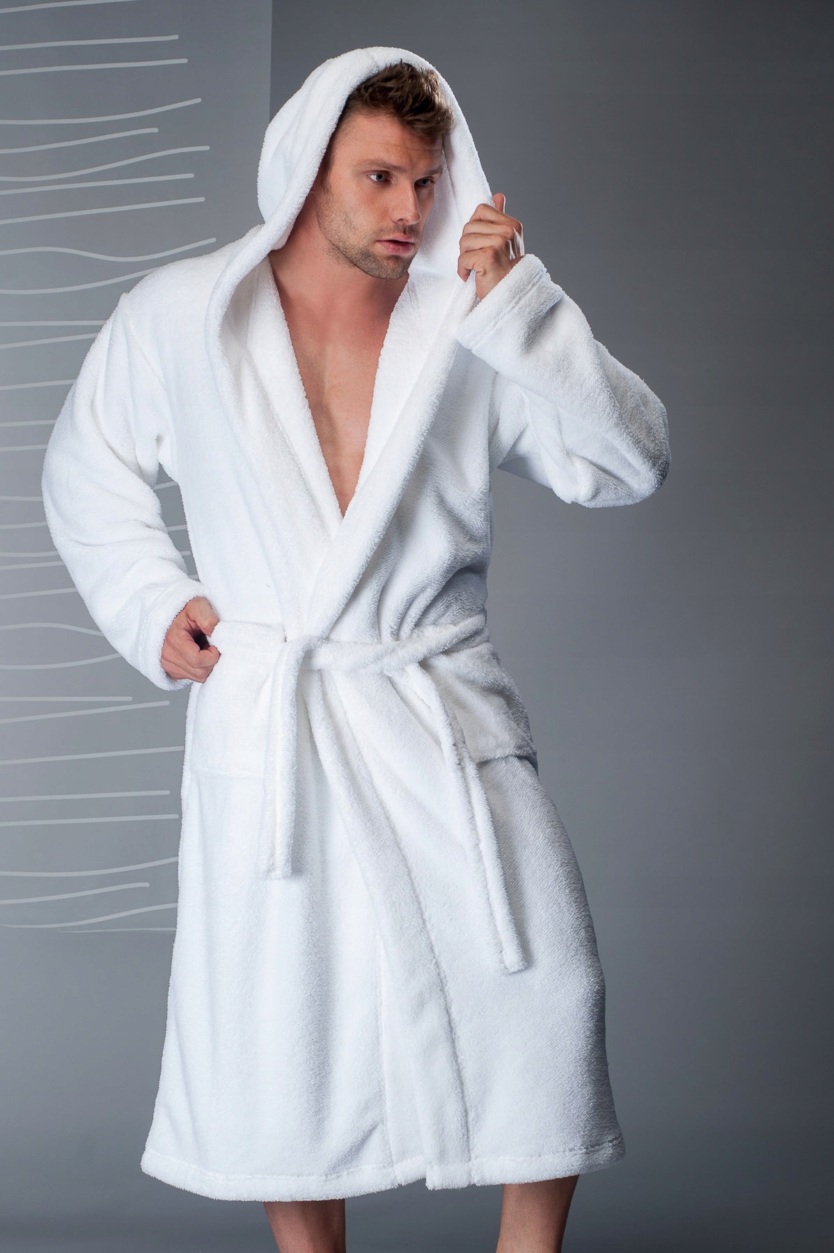 ДОВГИЙ ТЕПЛИЙ ПРИЄМНИЙ ЧОЛОВІЧИЙ ХАЛАТ S&F SOFT КАПЮШОН 21057_LSk Білий XL