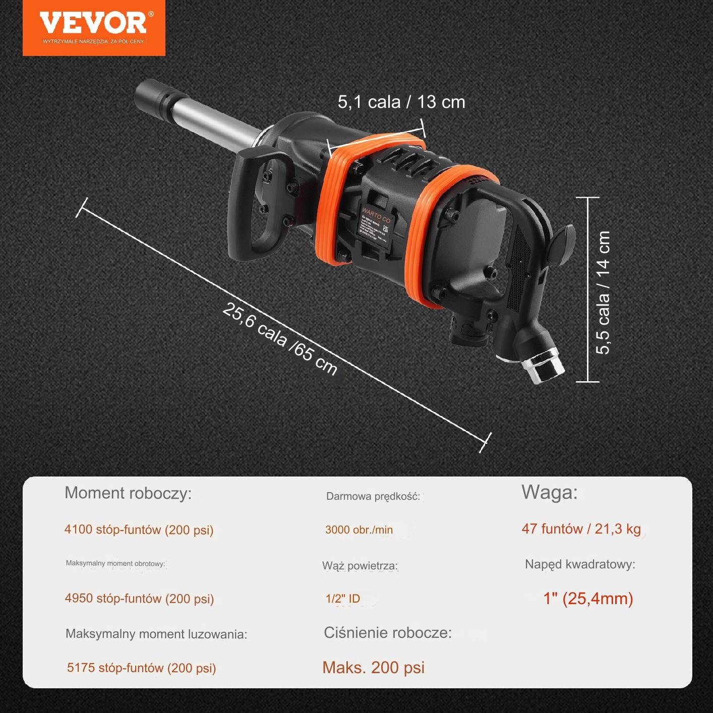 Благодаря выходной мощности до 7000 Нм и легкой конструкции пневматический ударный гайковерт VEVOR является мощным и доступным по цене, способным обрабатывать концы колес легковых и легких грузовиков, а также работать с легкой подвеской, оставаясь при этом удобным и маневренным. ВЕВОР — лучший выбор для выполнения работы.