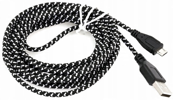 Кабель USB - microUSB, длина 3 метра, черно-белая оплетка