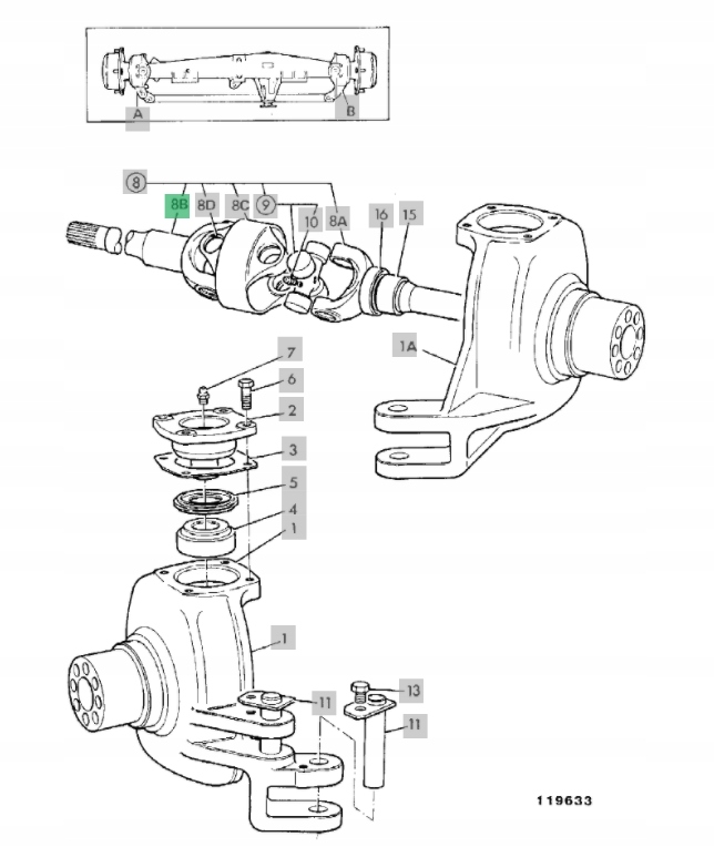 Передний мост - со стороны поворотного кулака, используемый в экскаваторах-погрузчиках JCB 2CX 3CX.