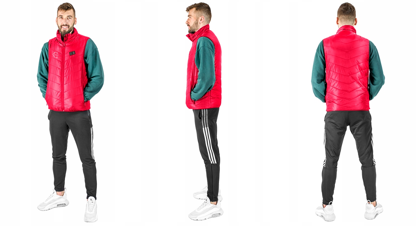 Просто подключите внешний аккумулятор к кабелю, расположенному во внутреннем кармане жилета, а затем включите его. Нажмите и удерживайте переключатель контроля температуры на груди в течение 3 секунд и… готово! Отопление включено!