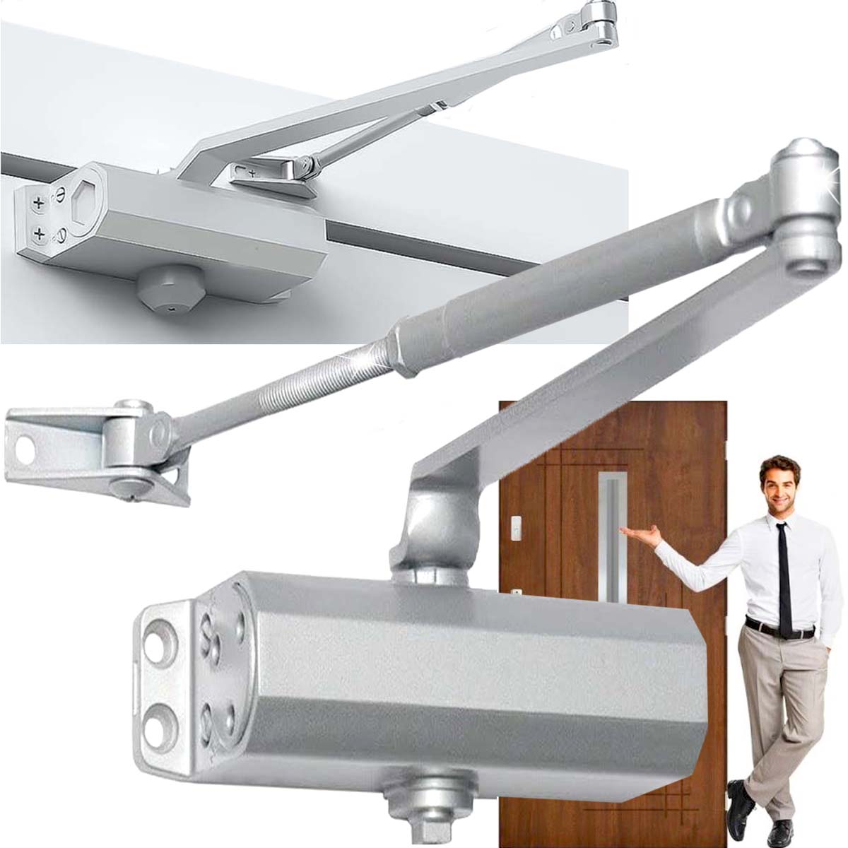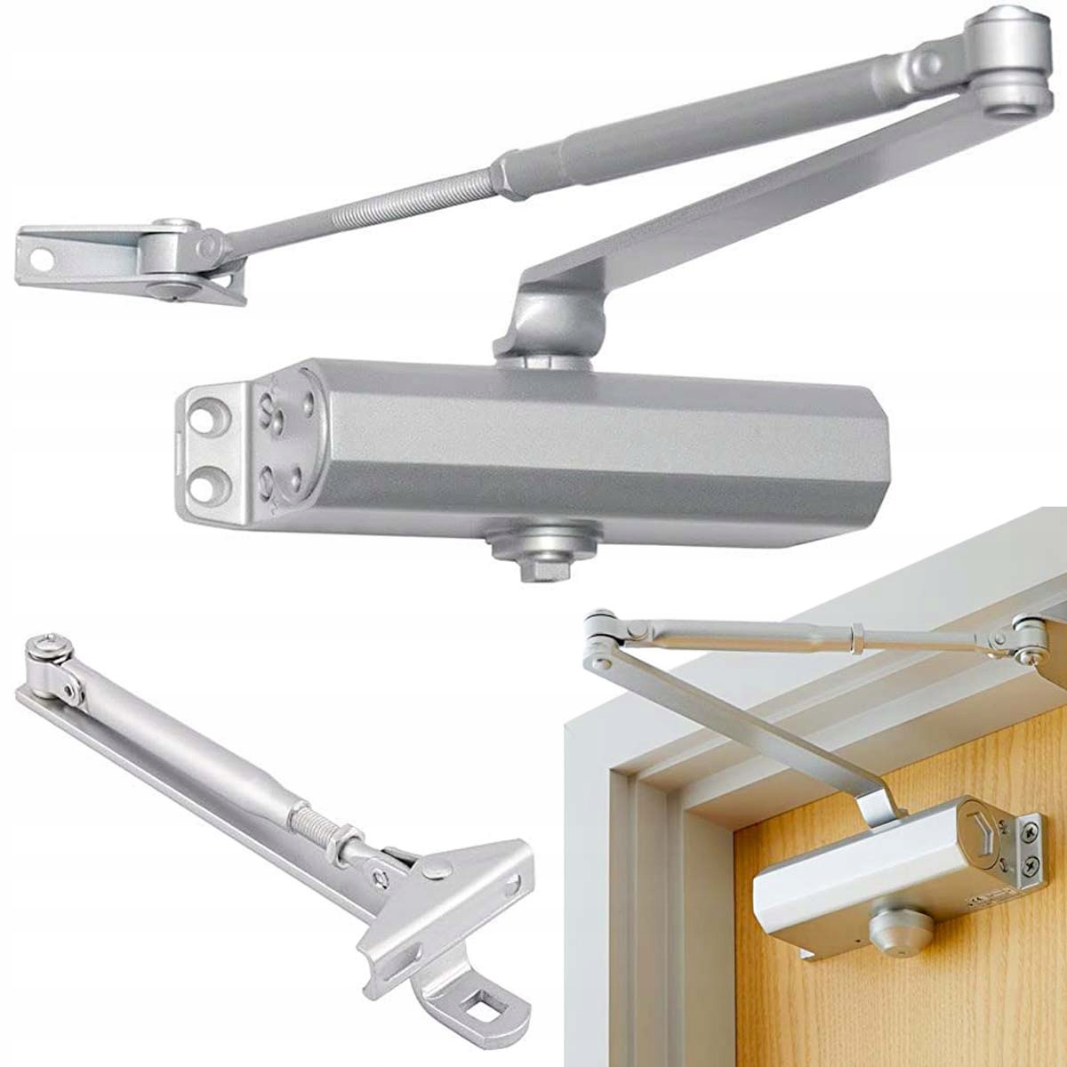 Изделие изготовлено из алюминия. Благодаря этому он прочен, а материал предотвращает деформацию рычага доводчика - дверь будет плавно двигаться даже при резких движениях. Вы можете регулировать изделие, спасибо которым вы защитите помещение от сквозняков.