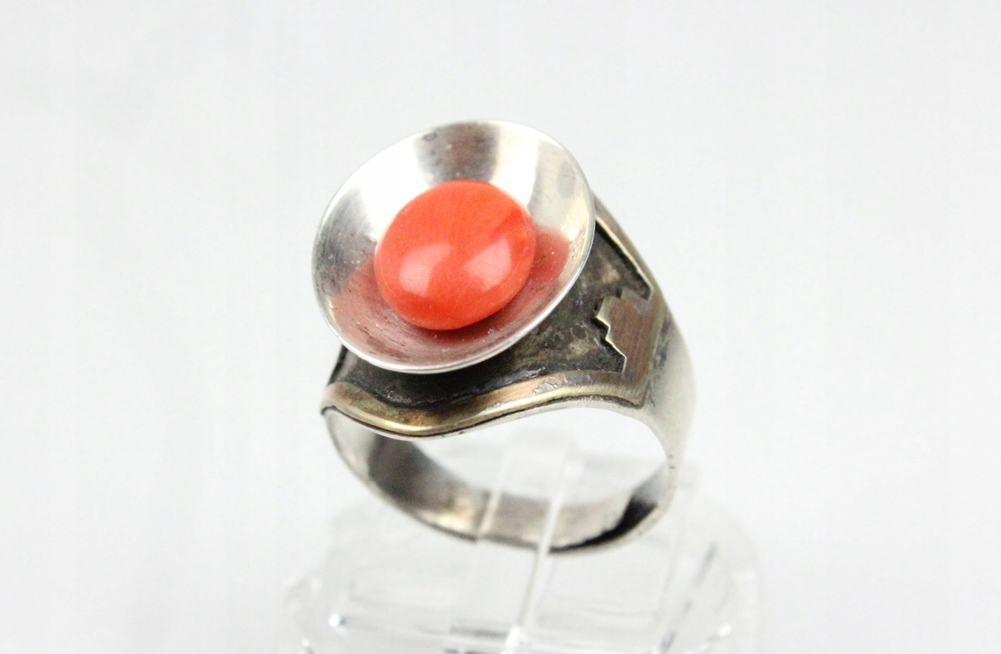 ДОВОЕННОЕ СЕРЕБРЯНОЕ КОЛЬЦО 835 ПРОБЫ С КОРАЛЛОМ