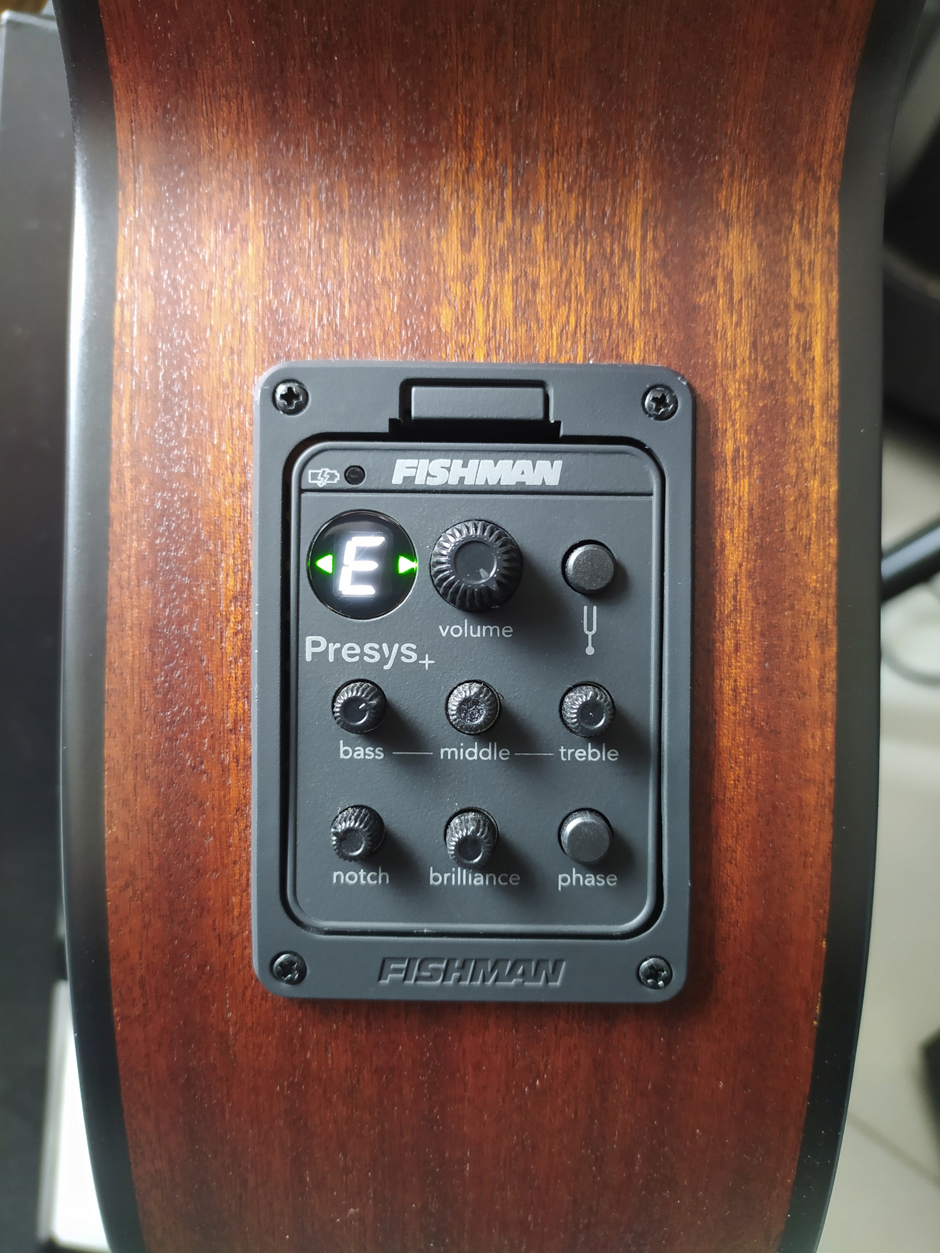 Прентор для акустической гитары отличной компании Fishman - presys - это система, предназначенная для гитарного звука высокого качества, связанного с усилителем. Предупроизместитель и специальный пикап Pizo, бескомпромиссно передают все звуковые нюансы. На панели вы найдете контроллер громкости, 3 -полосной эквалайзер, переключатель обращения фазы, встроенный тюнер со светодиодным экраном и индикатор низкого уровня батареи. Целое разработано так, что Preamp занимает как можно меньше места, батарея скрыта внизу, а доступ к нему удобен и быстр.