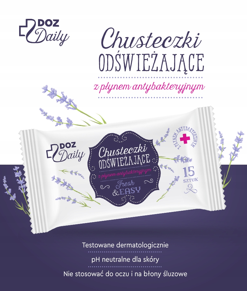 DOZ Салфетки освежающие ежедневные 15 шт. с антибактериальной жидкостью