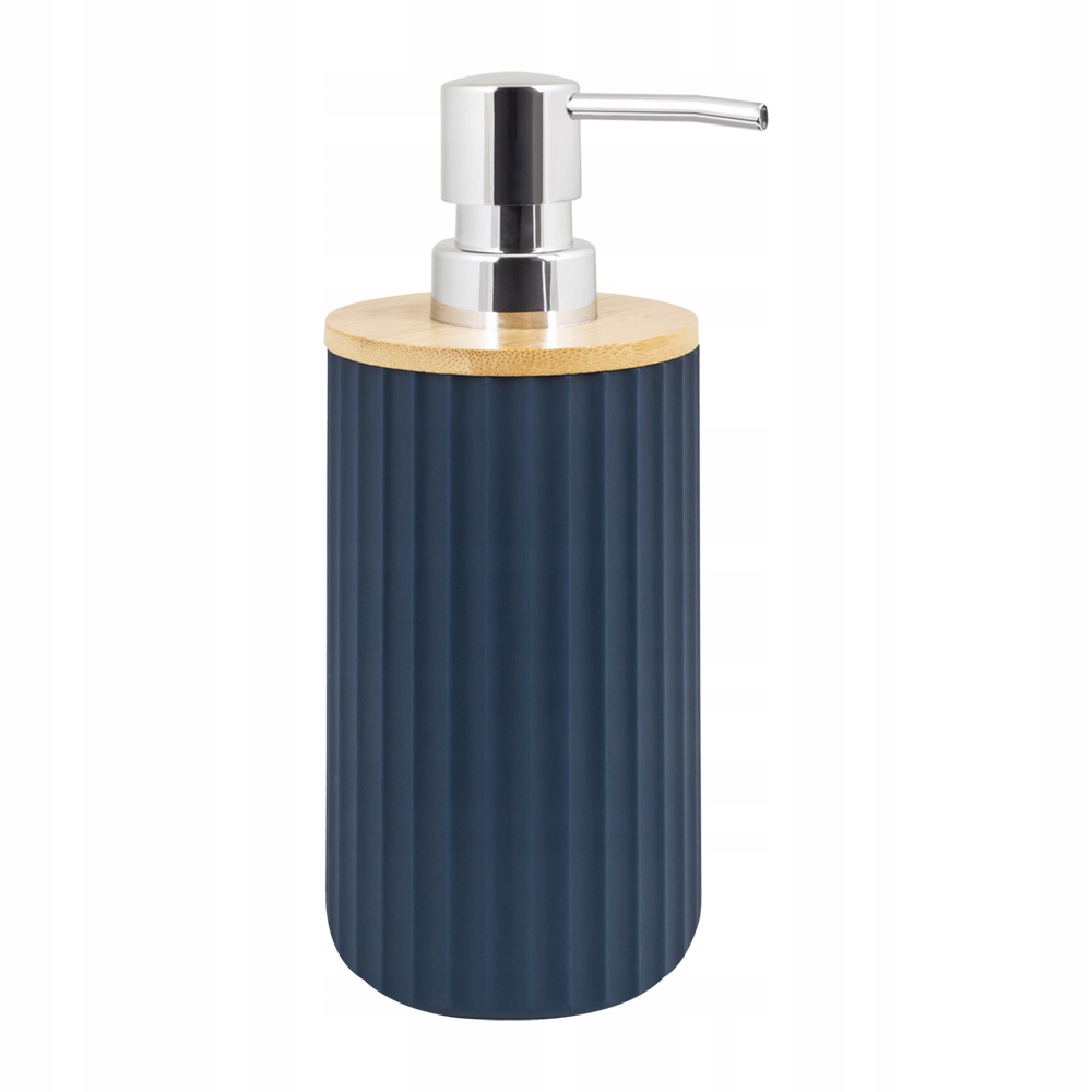 Элегантный дозатор мыла из серии Andora емкостью 350 мл. Изготовлен из приятного на ощупь материала темно-синего цвета. Природный шарм добавляют декоративные элементы из настоящего бамбука. Практичный и простой в использовании.