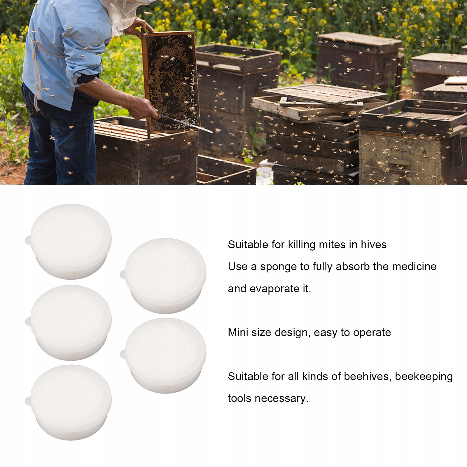 2. Профессиональный дизайн: Круглая форма подноса была специально разработана в соответствии с ульеями пчел, что обеспечивает оптимальное поглощение и испарение лекарственного средства через губку.