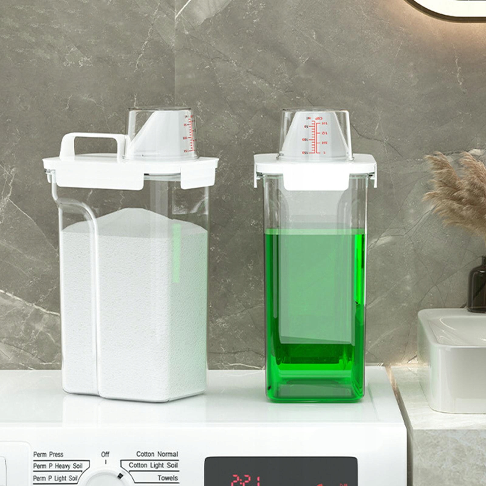 [Удобно использовать]: контейнер для стирального порошка имеет четкую конструкцию дозатора, позволяет легко проверять оставшееся количество и широкое отверстие для удобного пополнения в любое время.