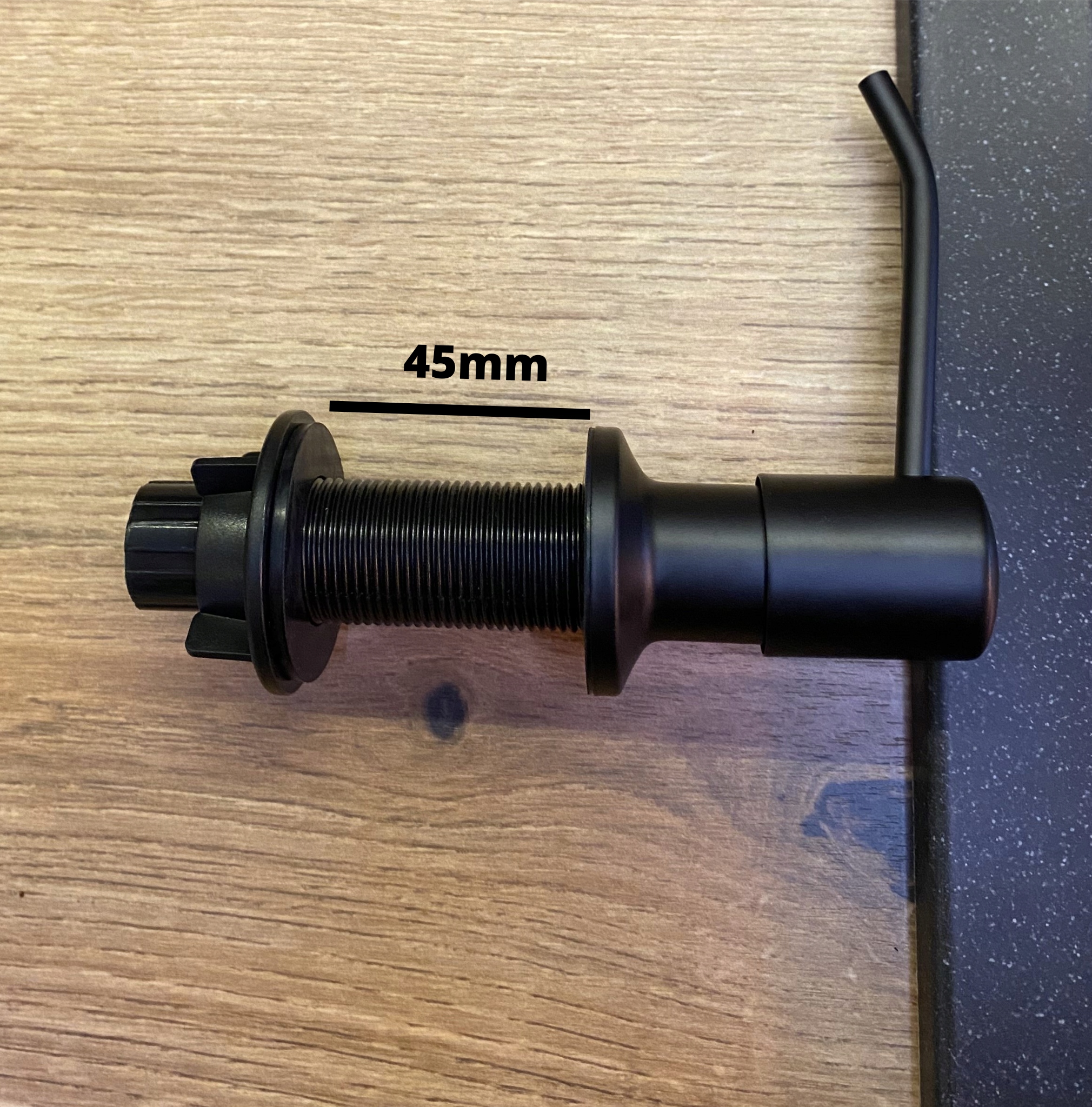 - Возможность установки диспенсера в столешницу или раковину толщиной 45мм. (Возможна установка в более толстую, но дозатор не будет надежно и плотно затянут)